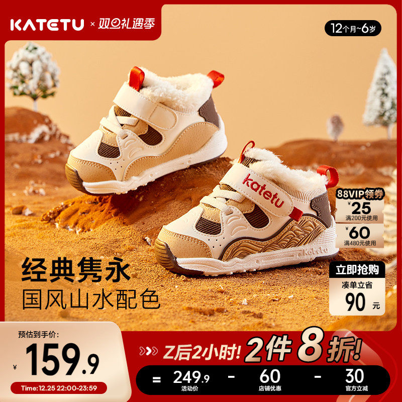 卡特兔童鞋保暖加厚学步鞋机能男童女童加绒儿童冬季鞋子棉鞋