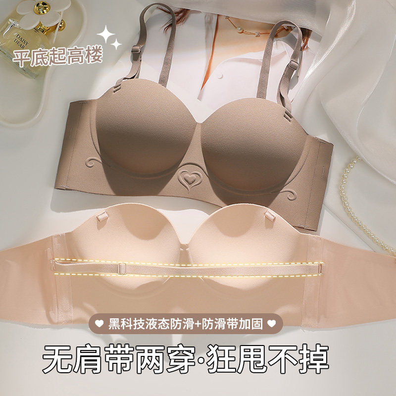无肩带内衣女防滑聚拢小胸显大收副乳防下垂无痕抹胸裹胸隐形文胸