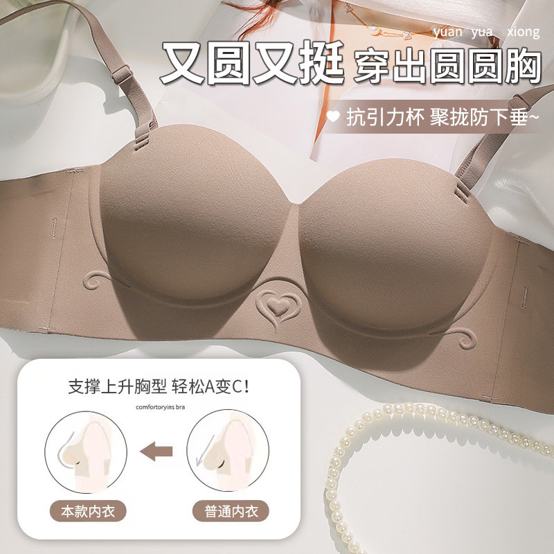 润微提拉内衣女大胸显小无痕防下垂收副乳胸罩爆款隐形粉底液文胸
