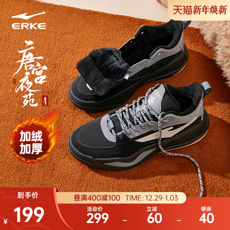 唐宫鸿星尔克高帮男鞋板鞋冬季加绒鞋子男款青少年运动鞋保暖棉鞋
