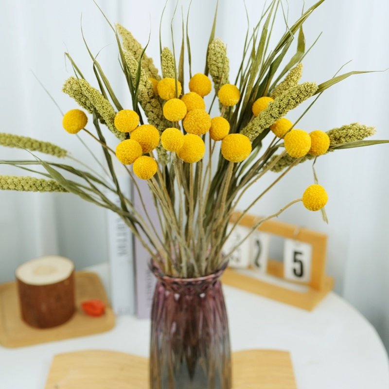 黄金球干花花束装饰品摆件满天星插花天然风干真花材料紫罗兰