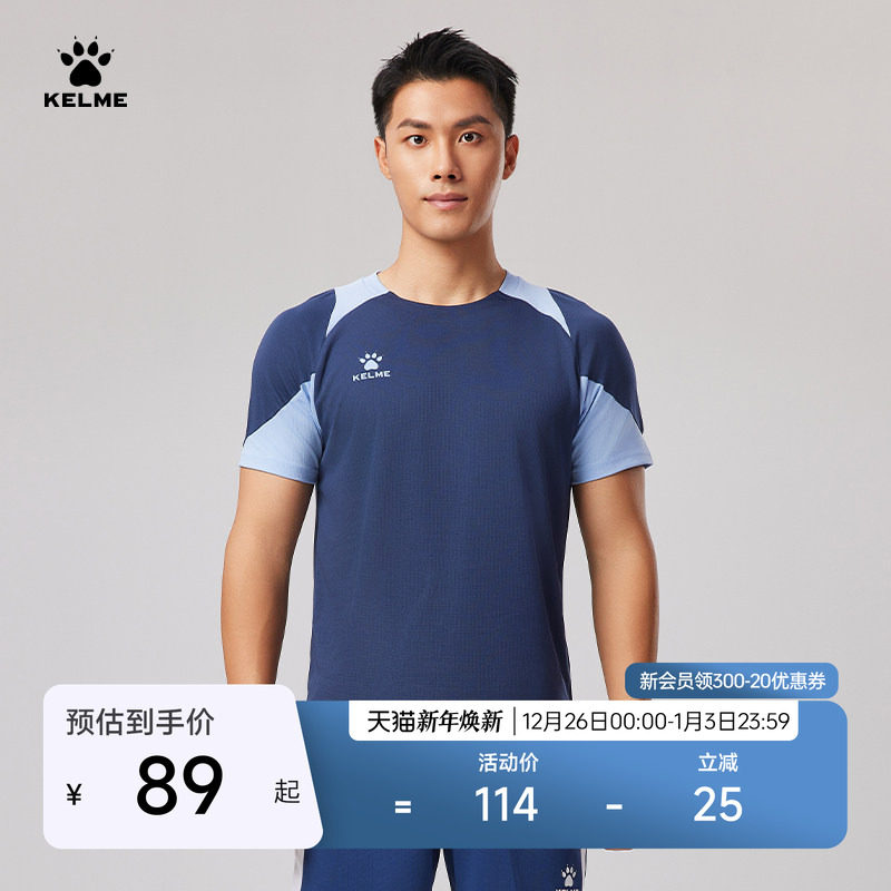 KELME卡尔美短袖训练服男夏季新款足球拼接透气上衣跑步运动T恤
