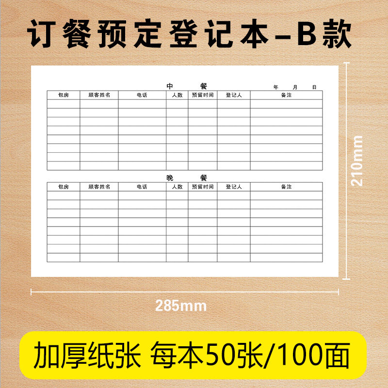 饭店订餐登记本餐饮酒店酒楼订餐预定登记簿餐饮酒席定位订桌本酒店包厢订位本登记本餐厅预约订餐本账本定制