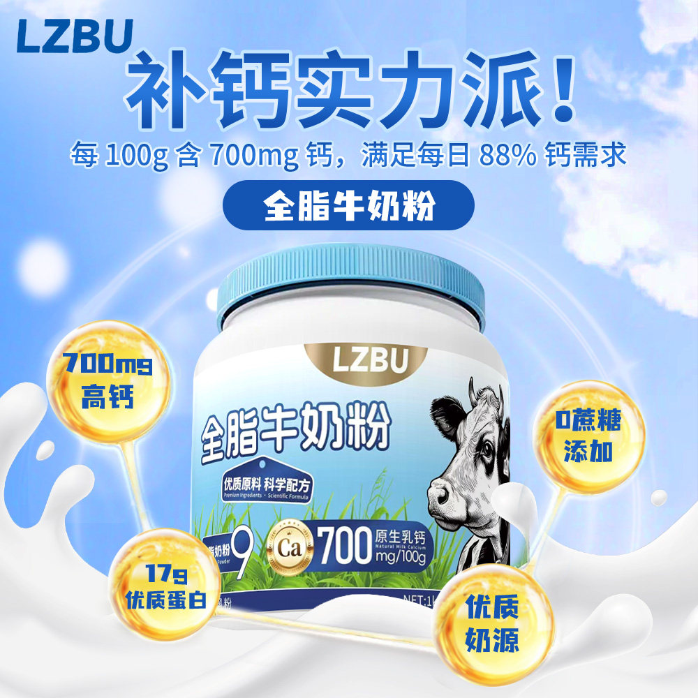 全脂牛奶乳无蔗糖全脂中老年孕妇儿童专用高钙奶粉高蛋白营养早餐