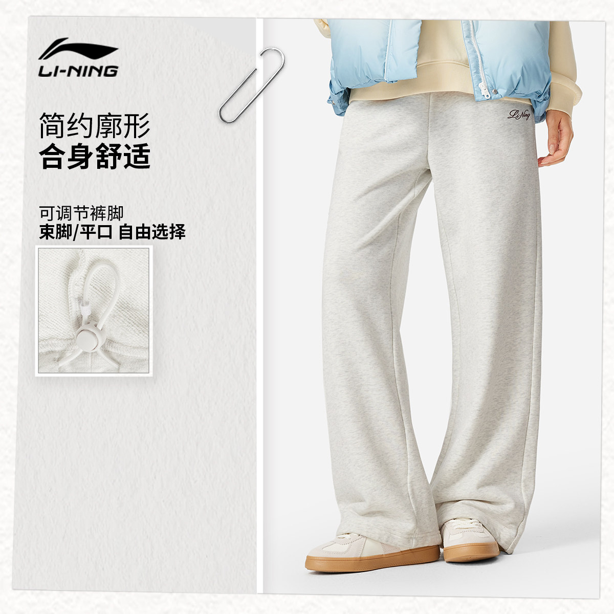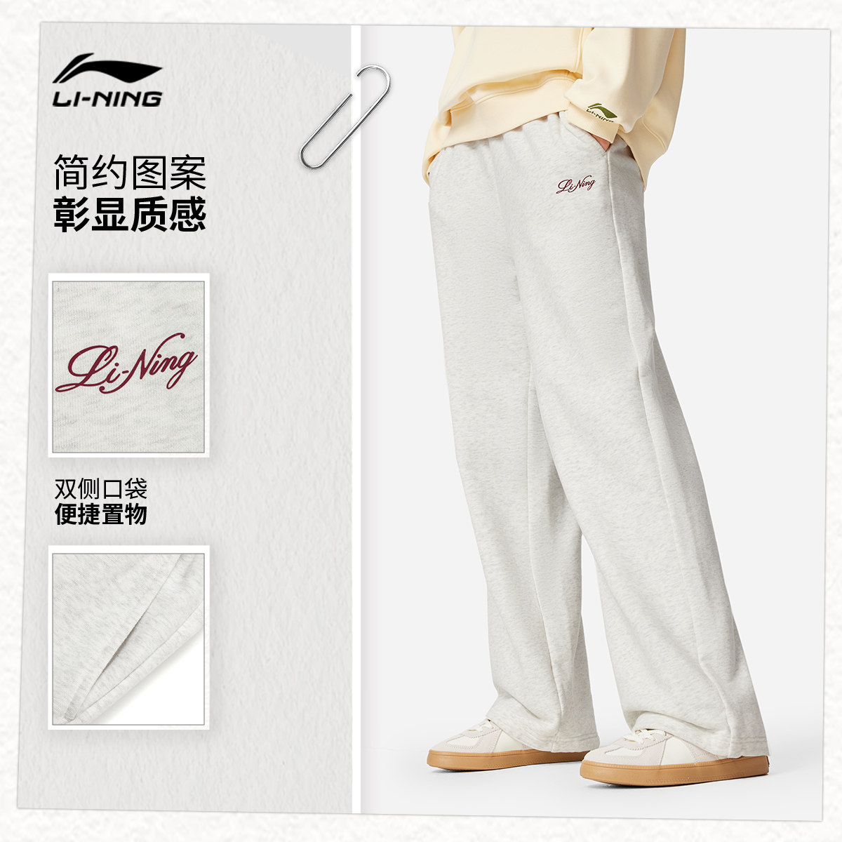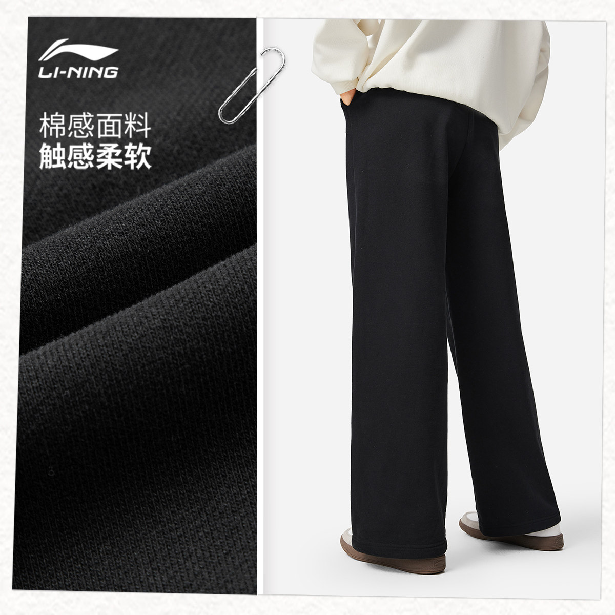 李宁卫裤女2026新款休闲长裤女装春季亲肤毛圈裤子直筒针织运动裤