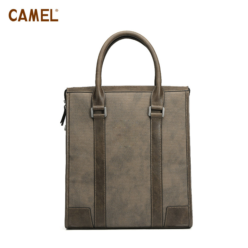【非卖品】camel骆驼 帆布+牛皮 时尚手提包 男包 斜挎包 正品