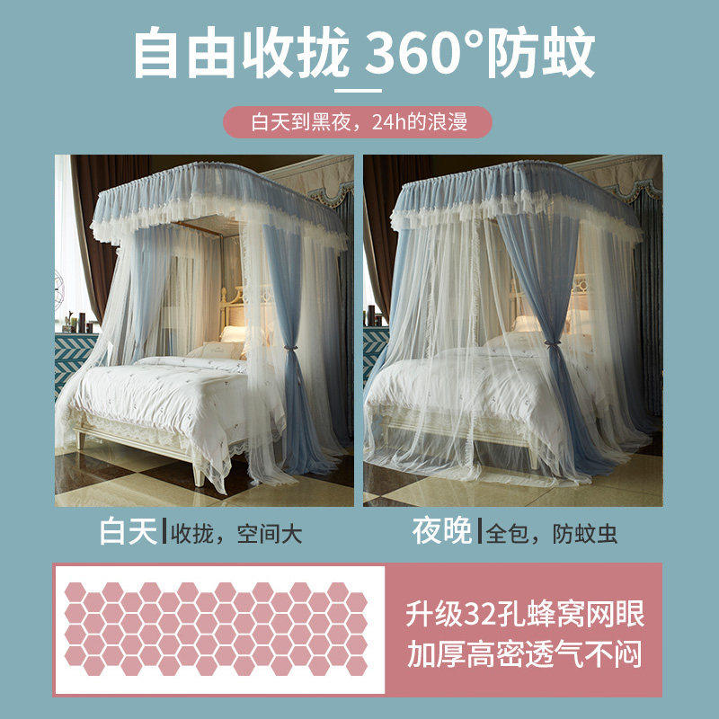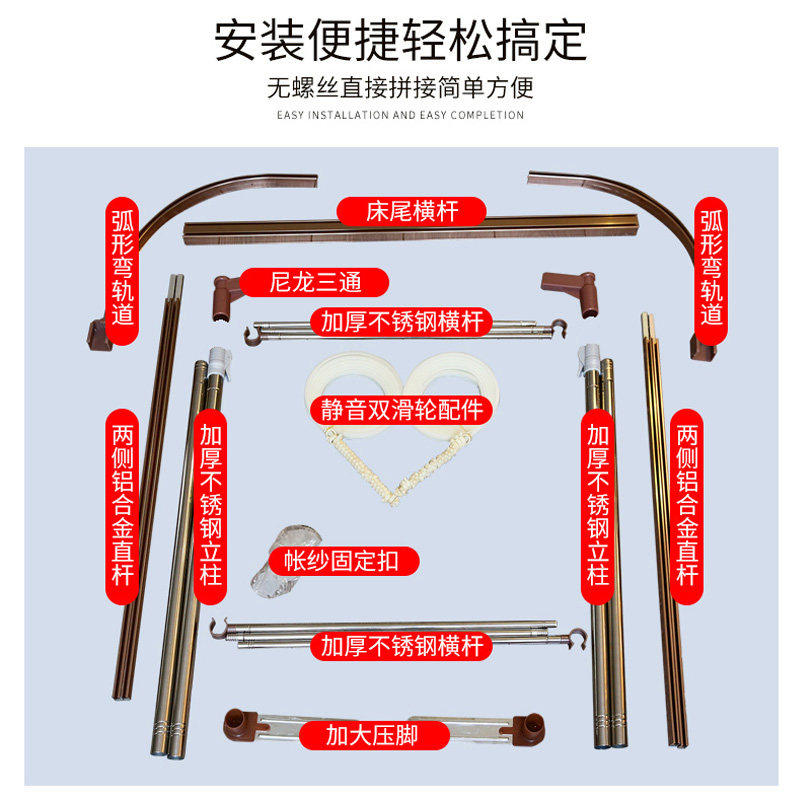 无印良品新型导轨蚊帐家用卧室u型轨道2026新款高级纹落地免安装