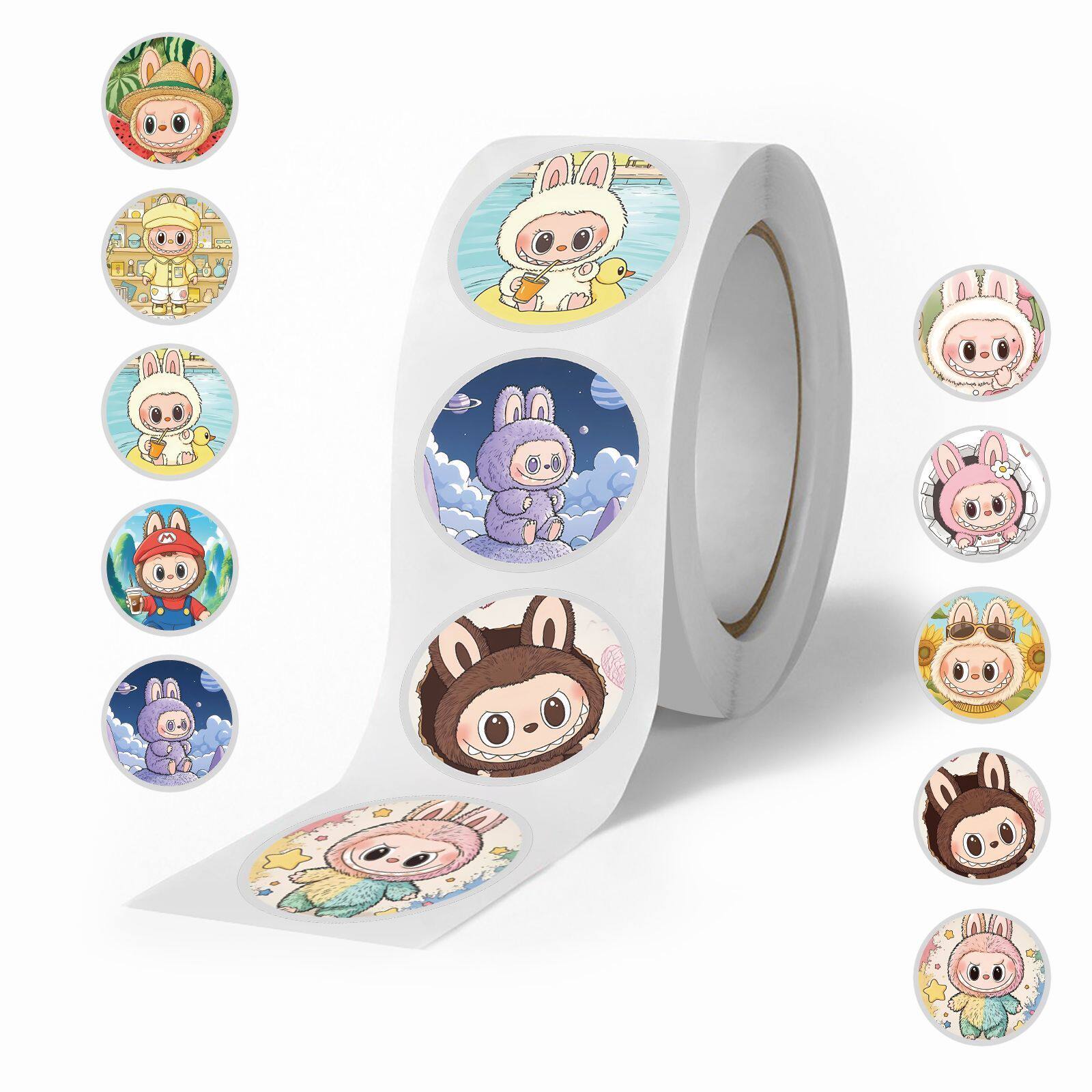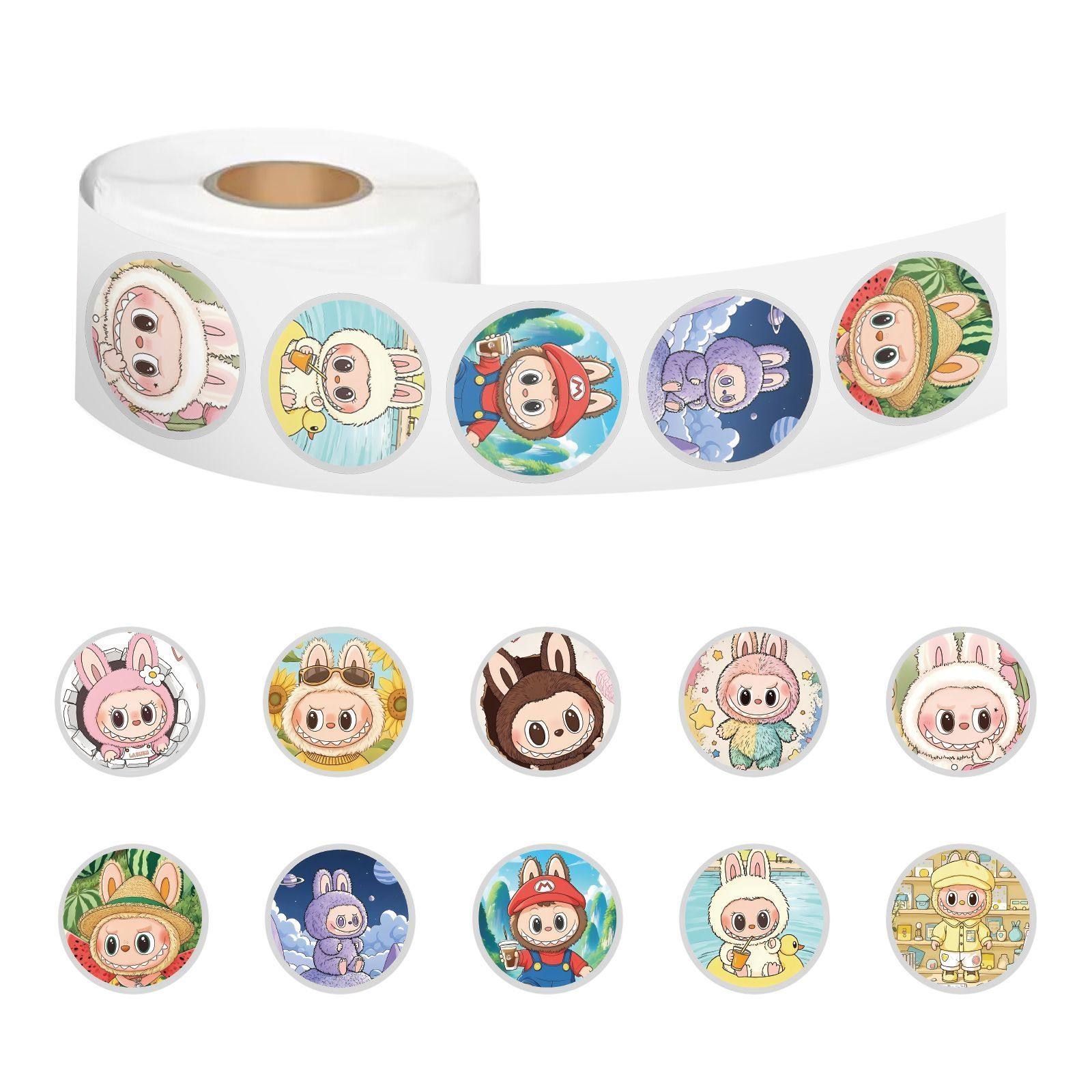 爆款拉布布卷卷贴可爱玩偶公仔labubu周边手账桌面贴纸封口贴diy