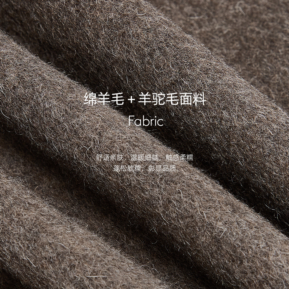 RUISHI芮时重磅驼绒桑蚕丝羊毛慵懒两穿领灰色毛呢大衣秋冬外套女