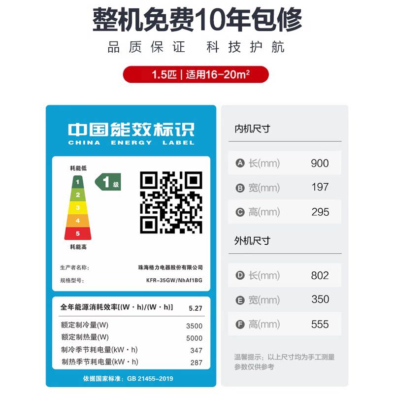 格力空调官方1.5匹云佳升级款云恬一级能效冷暖挂机正品政府补贴