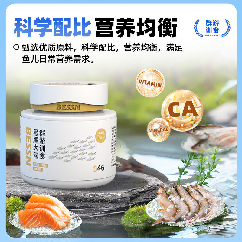 BESSN黑尾大勾鱼粮群游训食红鼻子剪刀一眉道人孔雀鱼小型鱼饲料