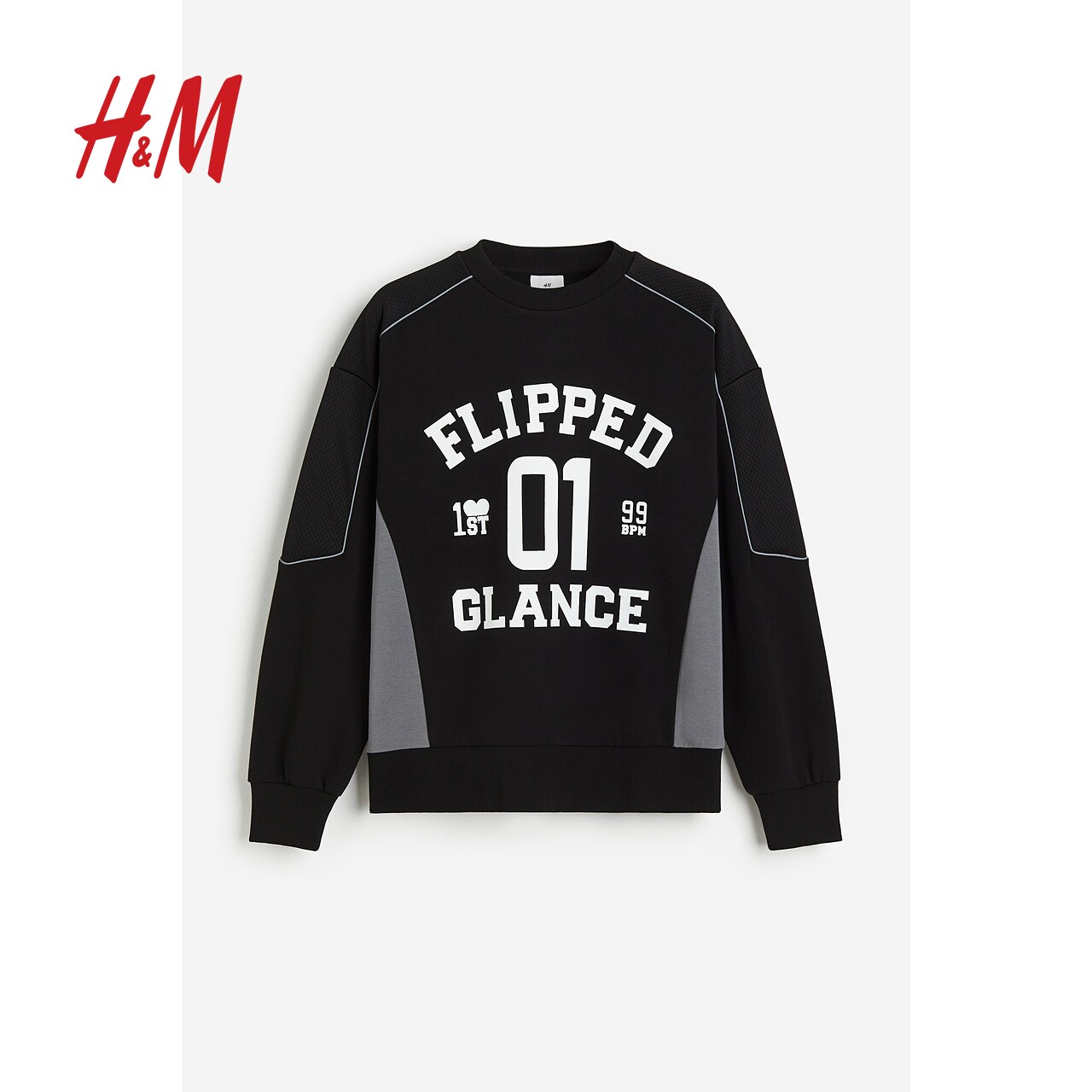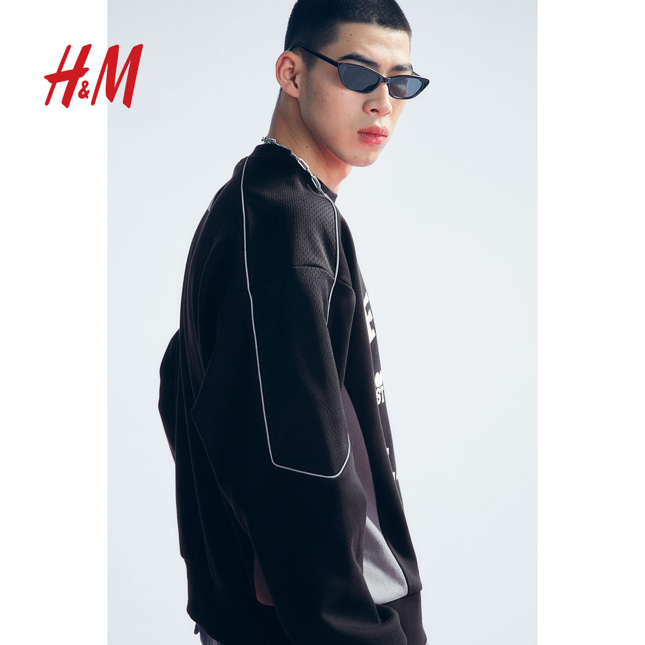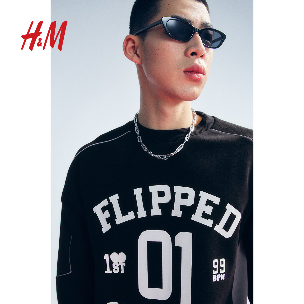 HM男装女装T恤春季重磅圆领长袖宽松字母印花长袖情侣上衣1221422