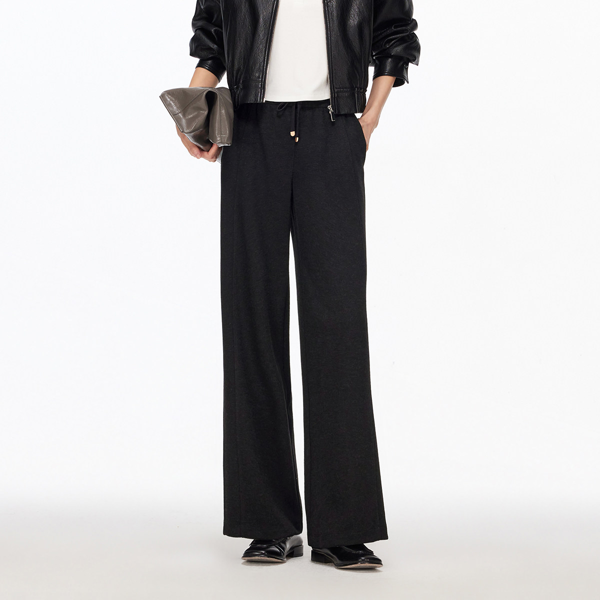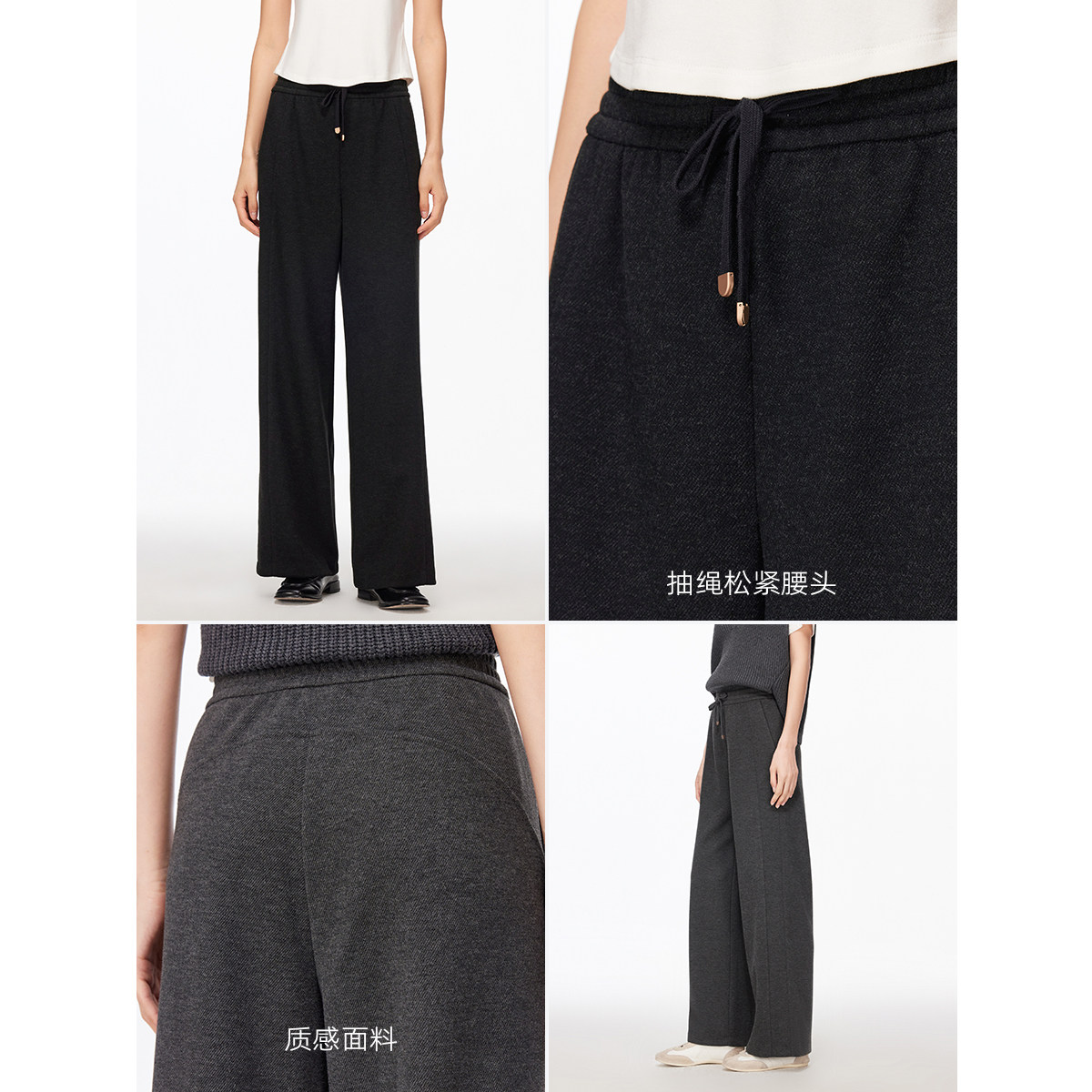 唐狮DESSO秋冬新款糯米裤高腰垂感宽松加绒直筒阔腿裤5