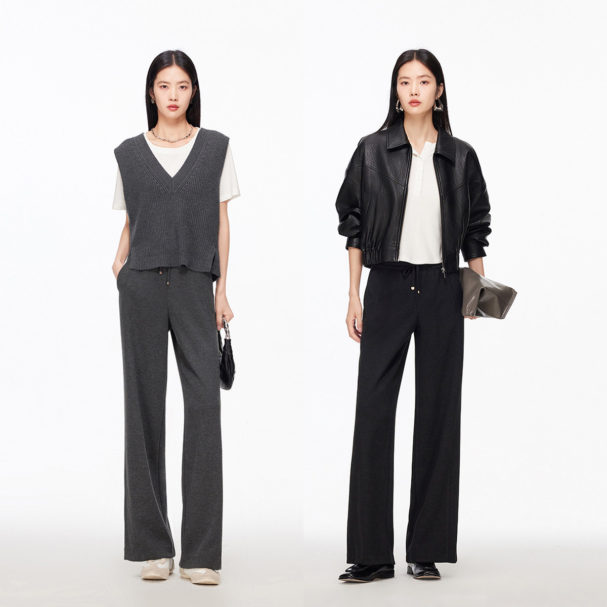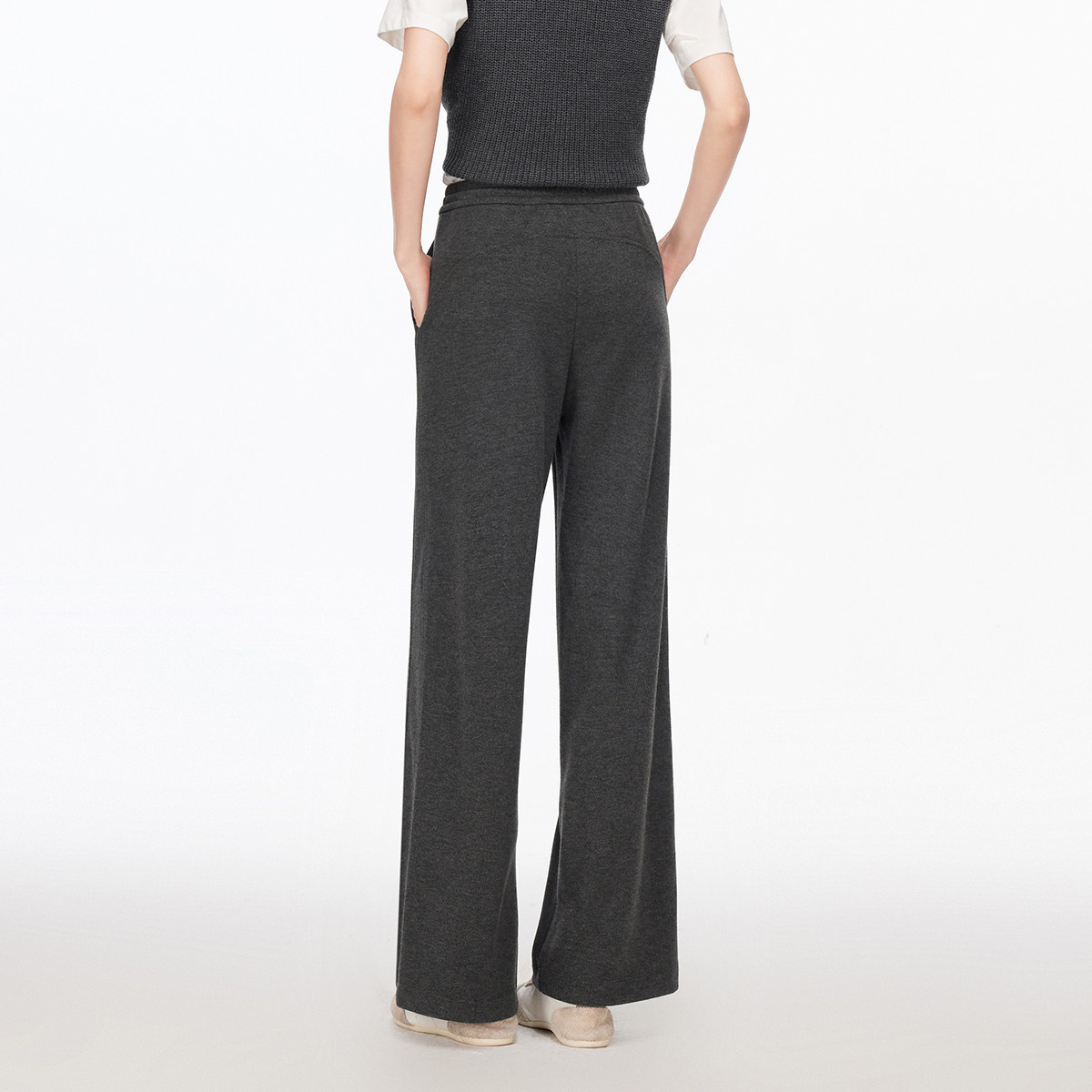 Vero Moda休闲裤2026春季新款含绵羊毛醋酸直筒裤松紧腰326174005