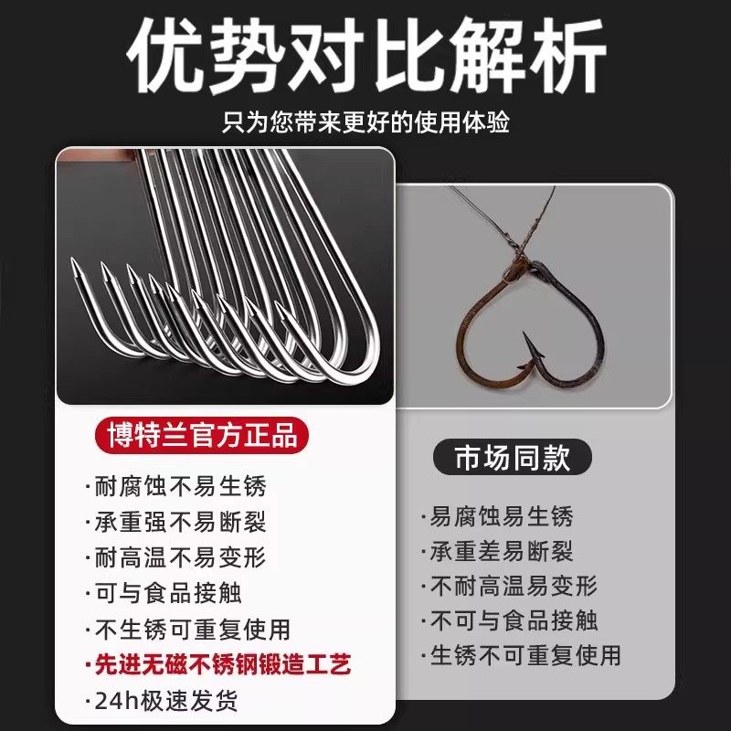 腊肉挂钩S型不锈钢晾晒猪肉钩子烤鸭香肠专用实心加粗大号尖头S勾