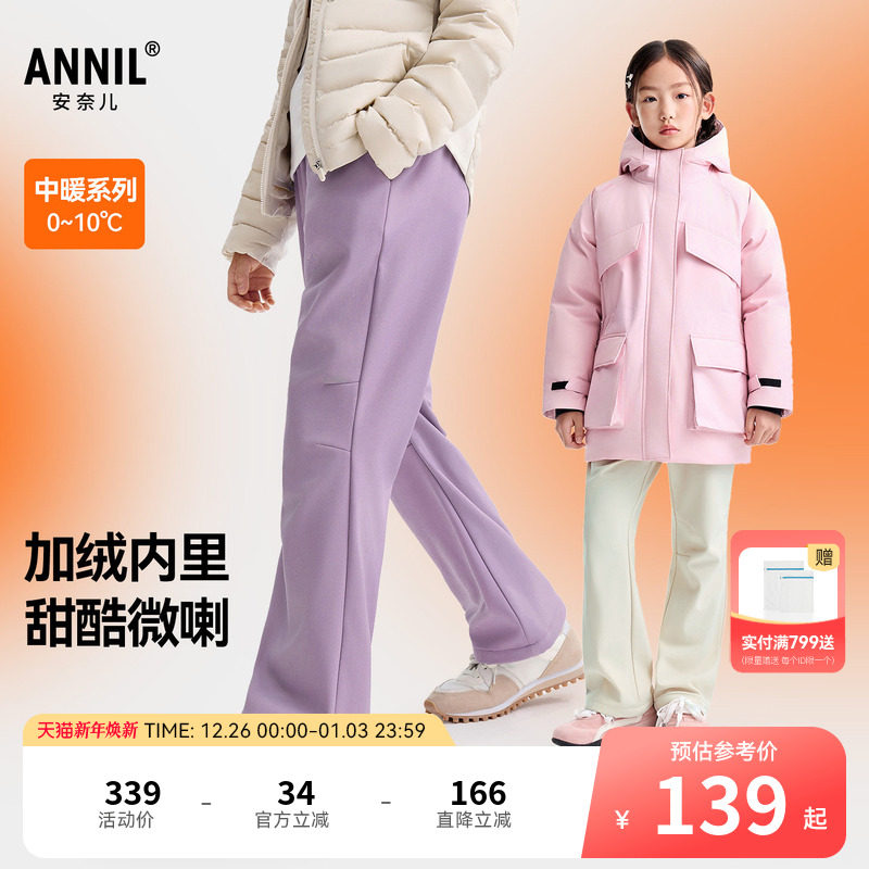 【加绒微喇】安奈儿童装女童裤子2025冬新款保暖防风厚款时尚长裤