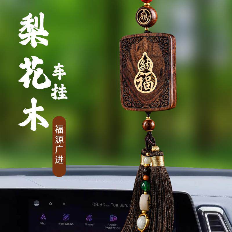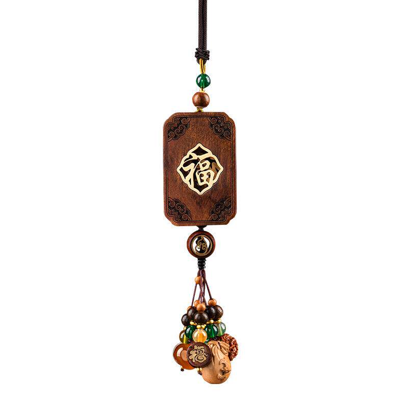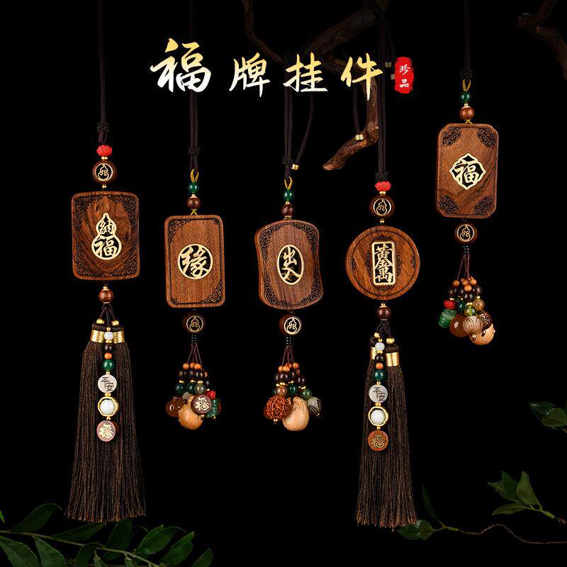 新款花梨木福牌高档汽车挂件创意精品车饰后视镜挂件送礼汽车用品