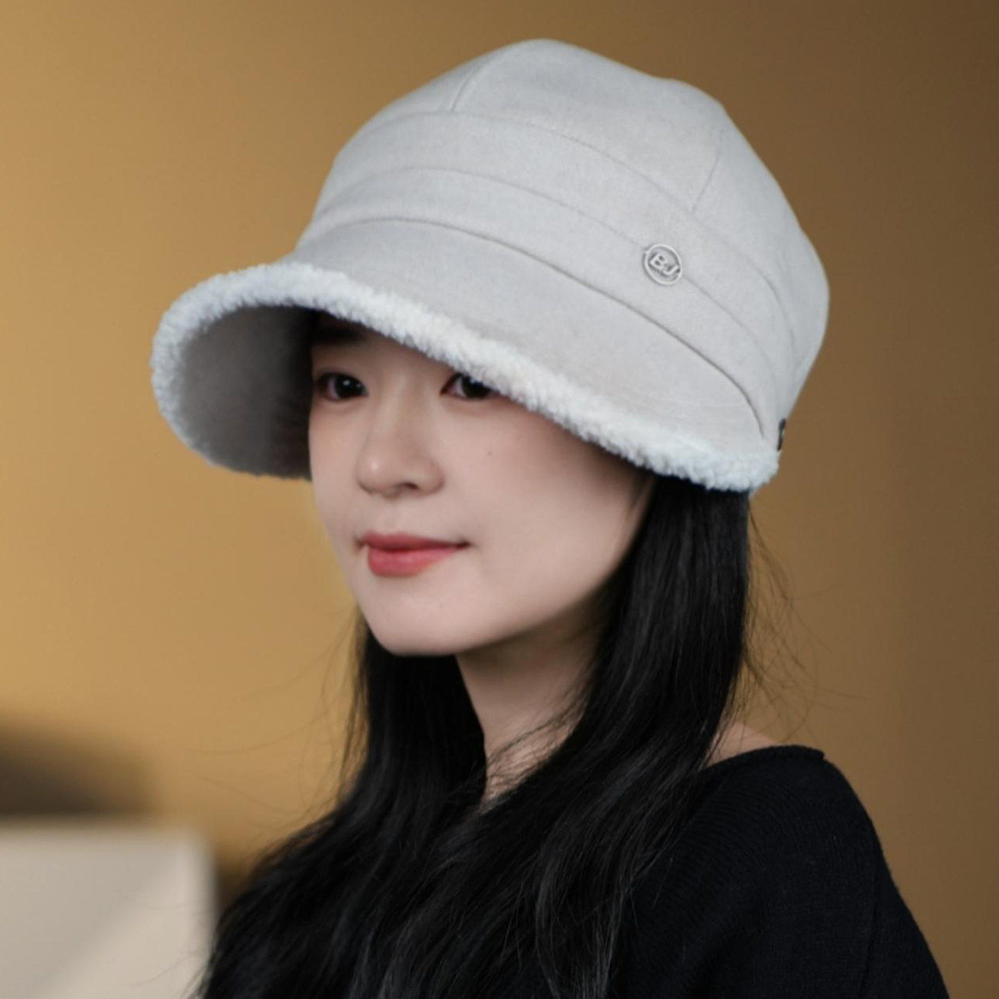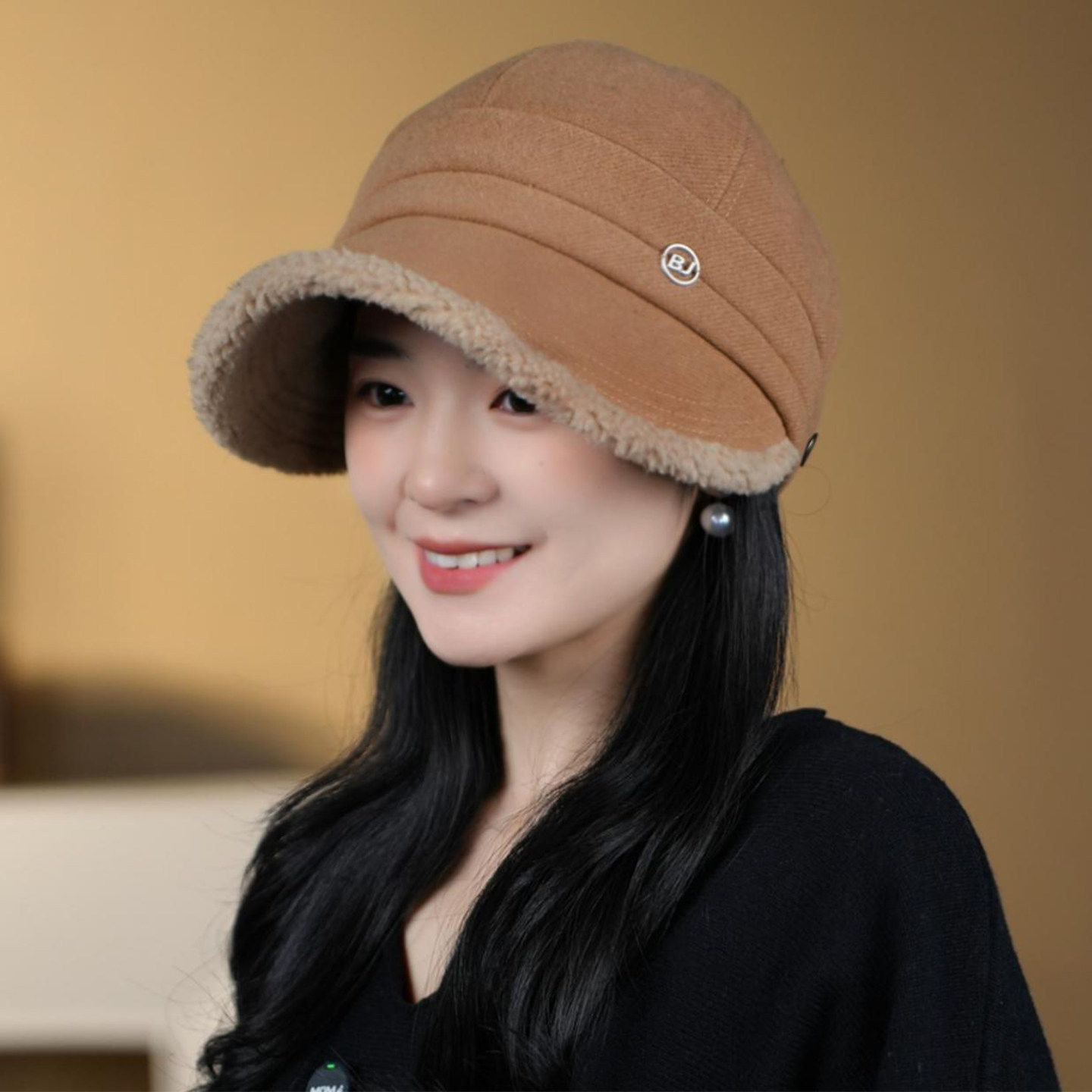 可挂口罩帽子女秋冬保暖2025新款时尚显脸小加绒宽檐马术帽鸭舌帽