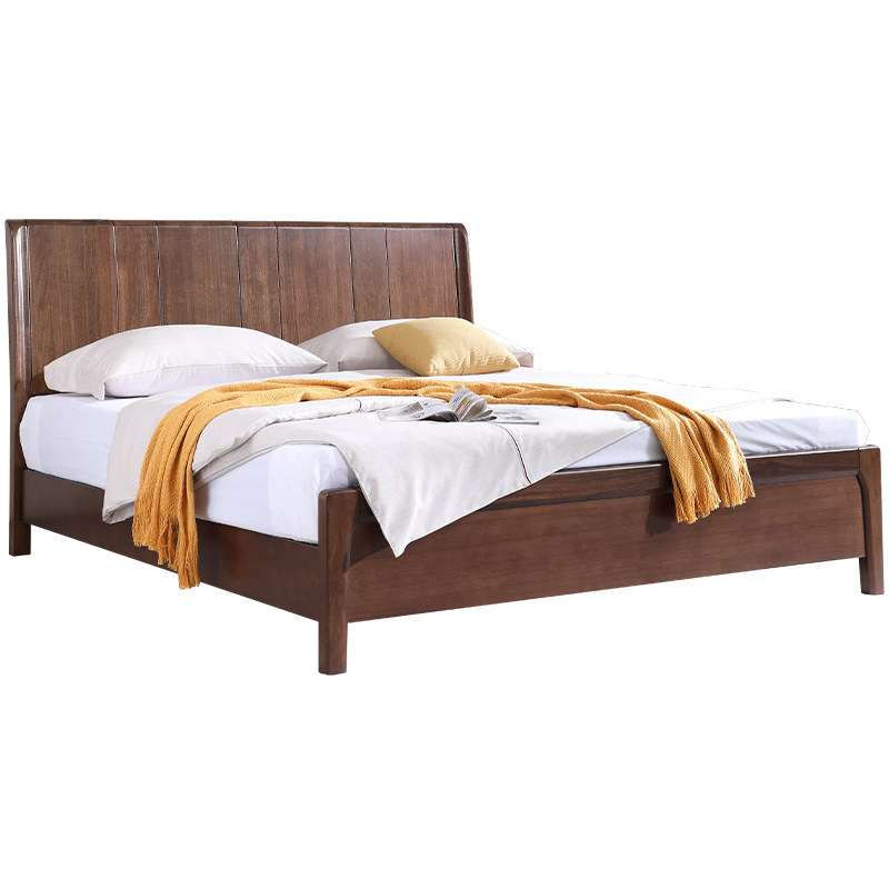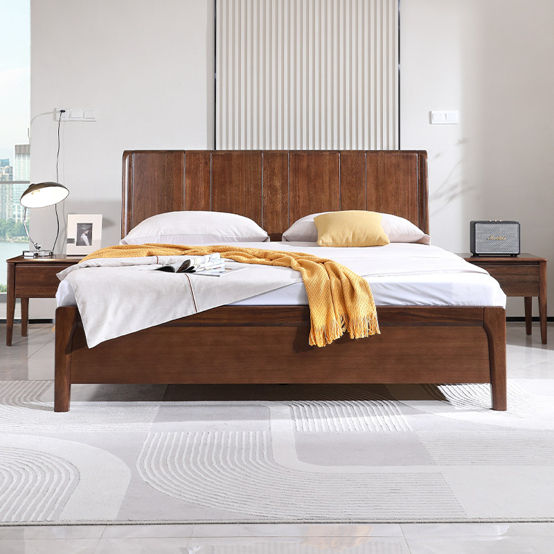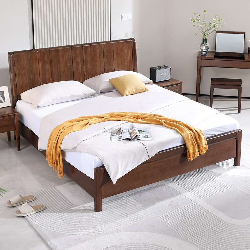 实木床现代简约胡桃木主卧1.5米双人床1.8米主卧轻奢婚房双人床