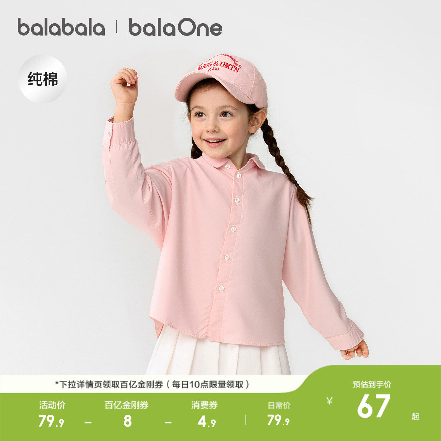巴拉巴拉童装男童长袖衬衫宝宝2026新款春装纯棉亲肤纯色衬衣时尚
