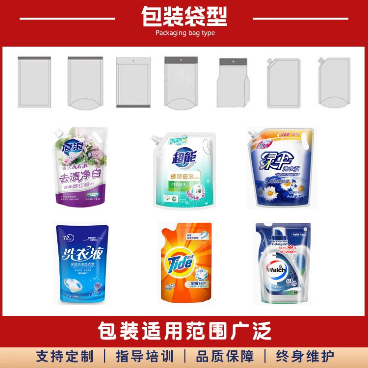 全自动给袋式洗衣液包装机 自立斜嘴预制袋酵素果汁液体包装机