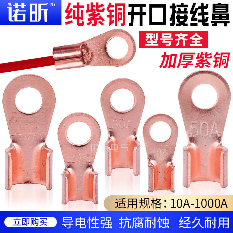 OT开口鼻紫铜接线铜线鼻铜端子铜线耳铜鼻子接头套装组合压线家用