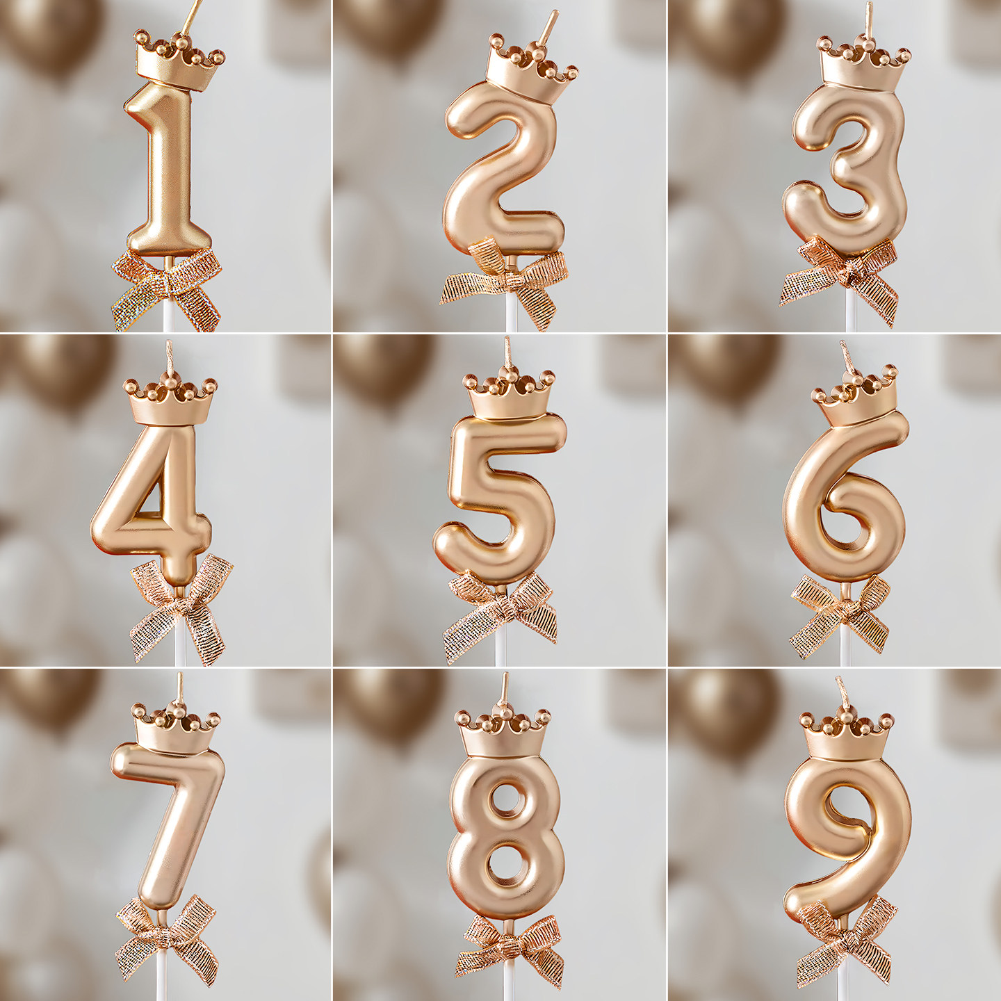 粉色皇冠数字蜡烛生日装饰插件成人周岁派对布置装扮蝴蝶结氛围