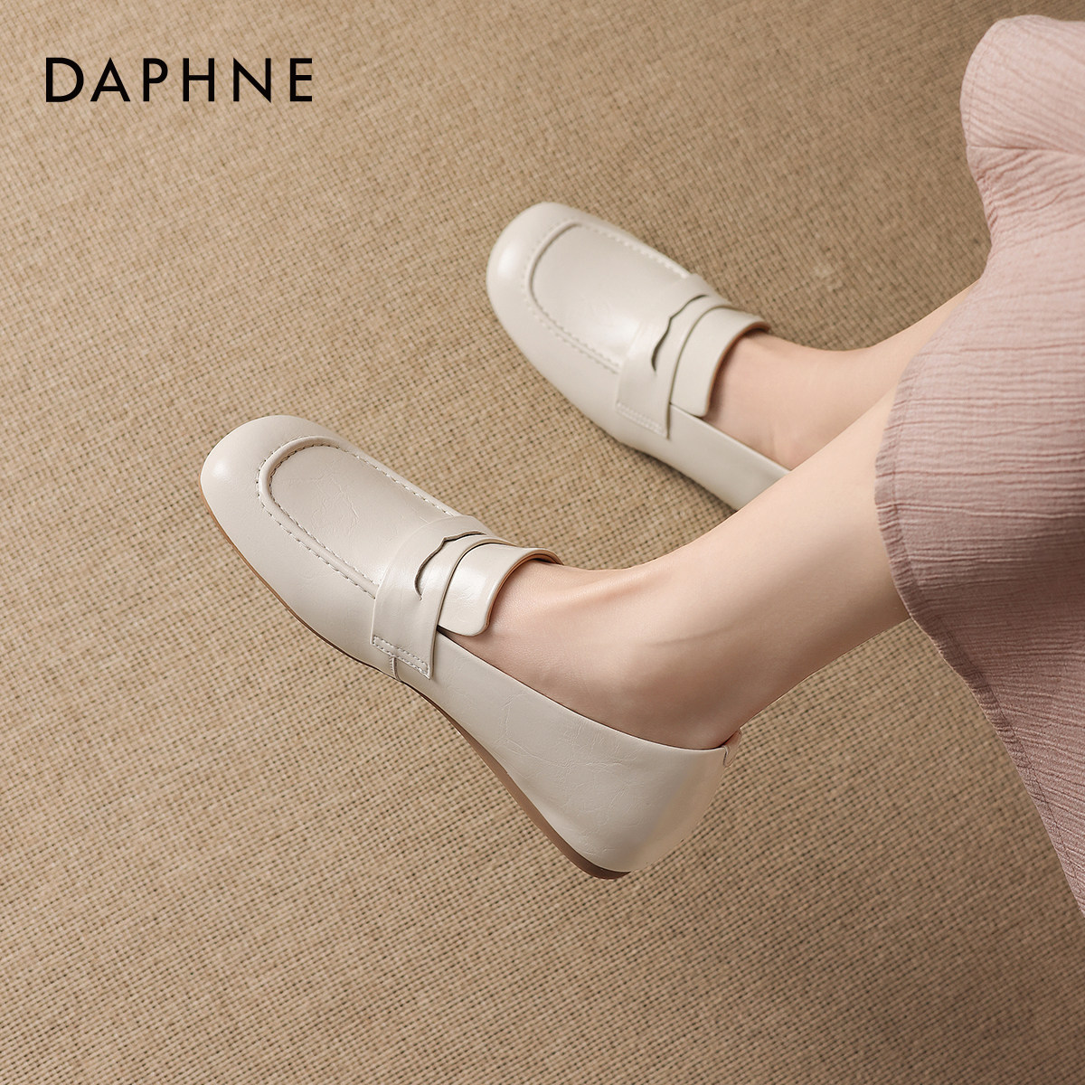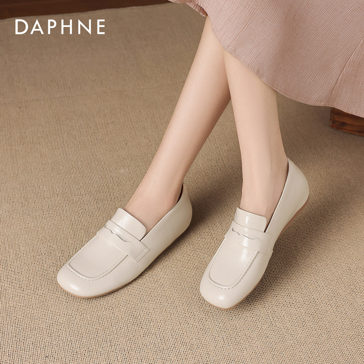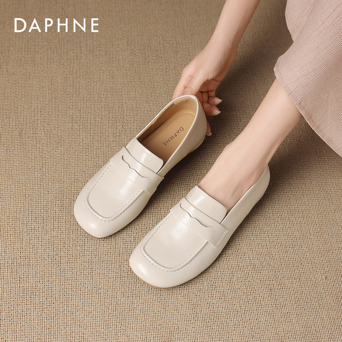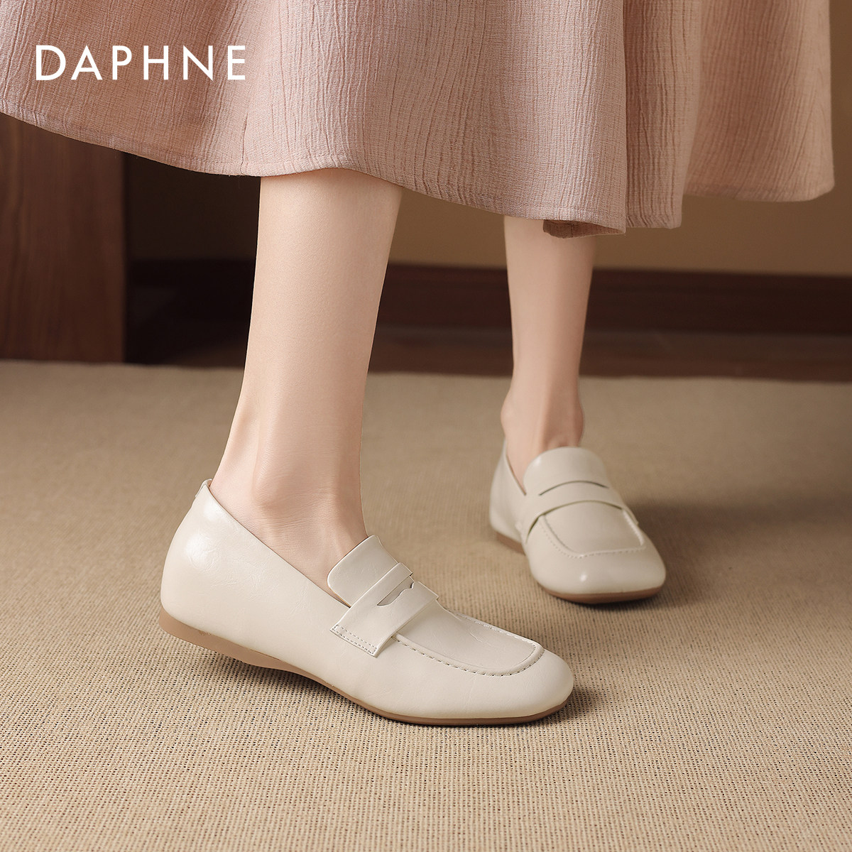 达芙妮白色乐福鞋女款2026新款巨好看小皮鞋豆豆鞋一脚蹬软底单鞋
