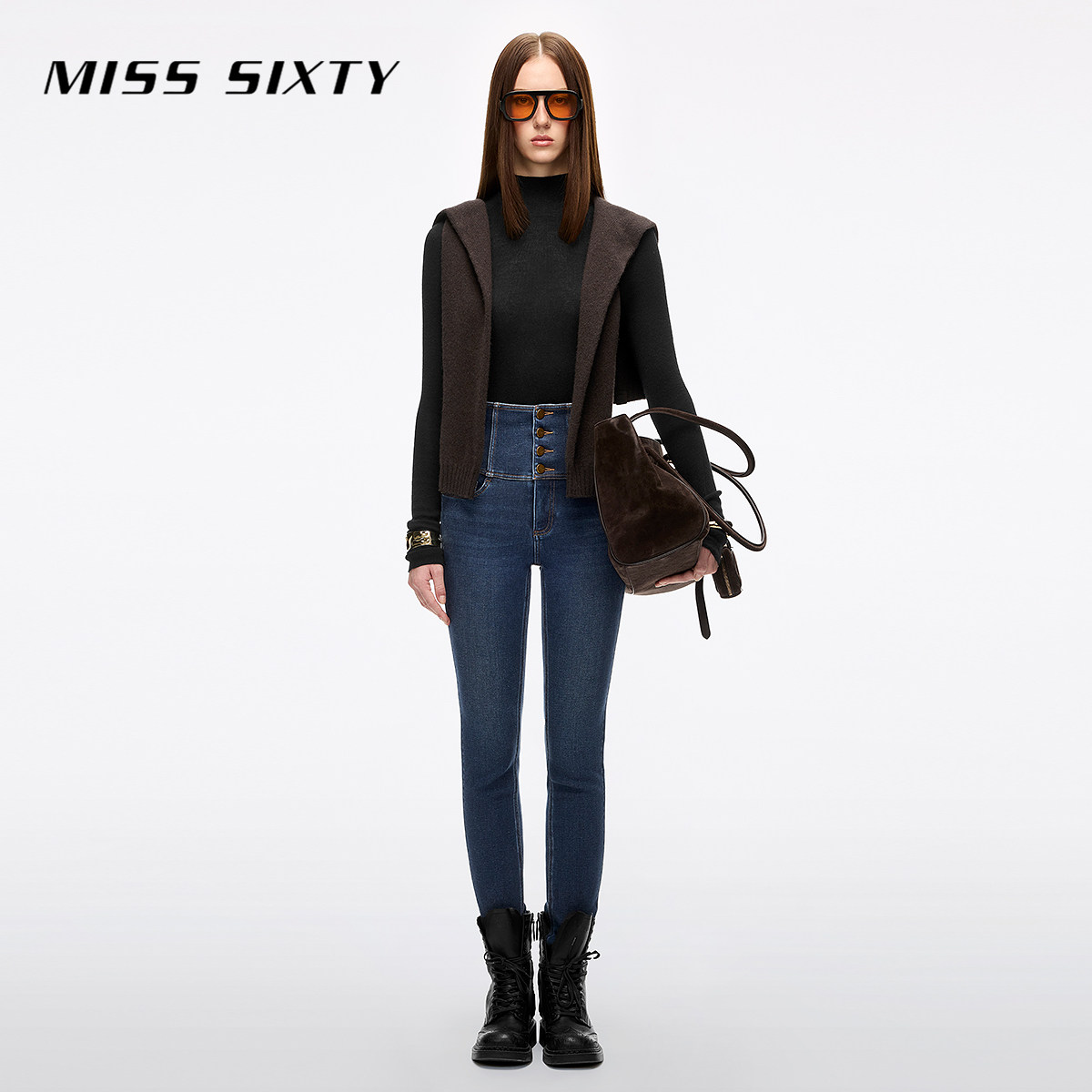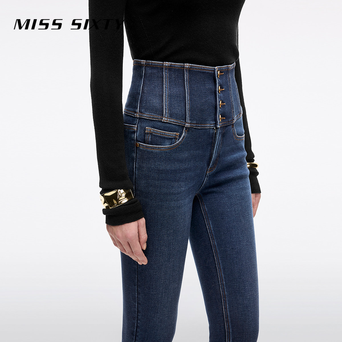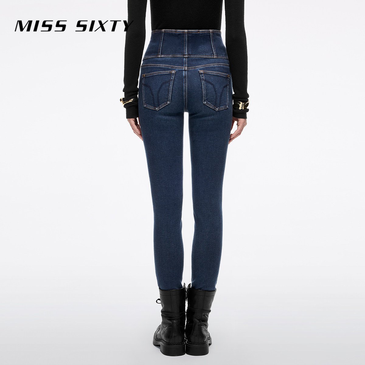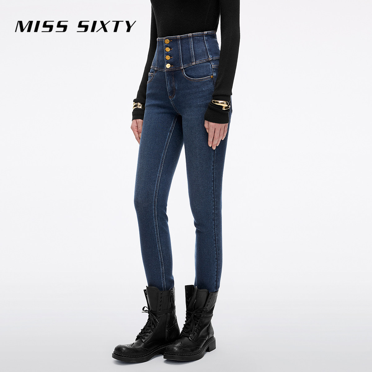 【保暖复合绒】Miss Sixty2025冬季新款牛仔裤女四扣加厚小脚靴裤