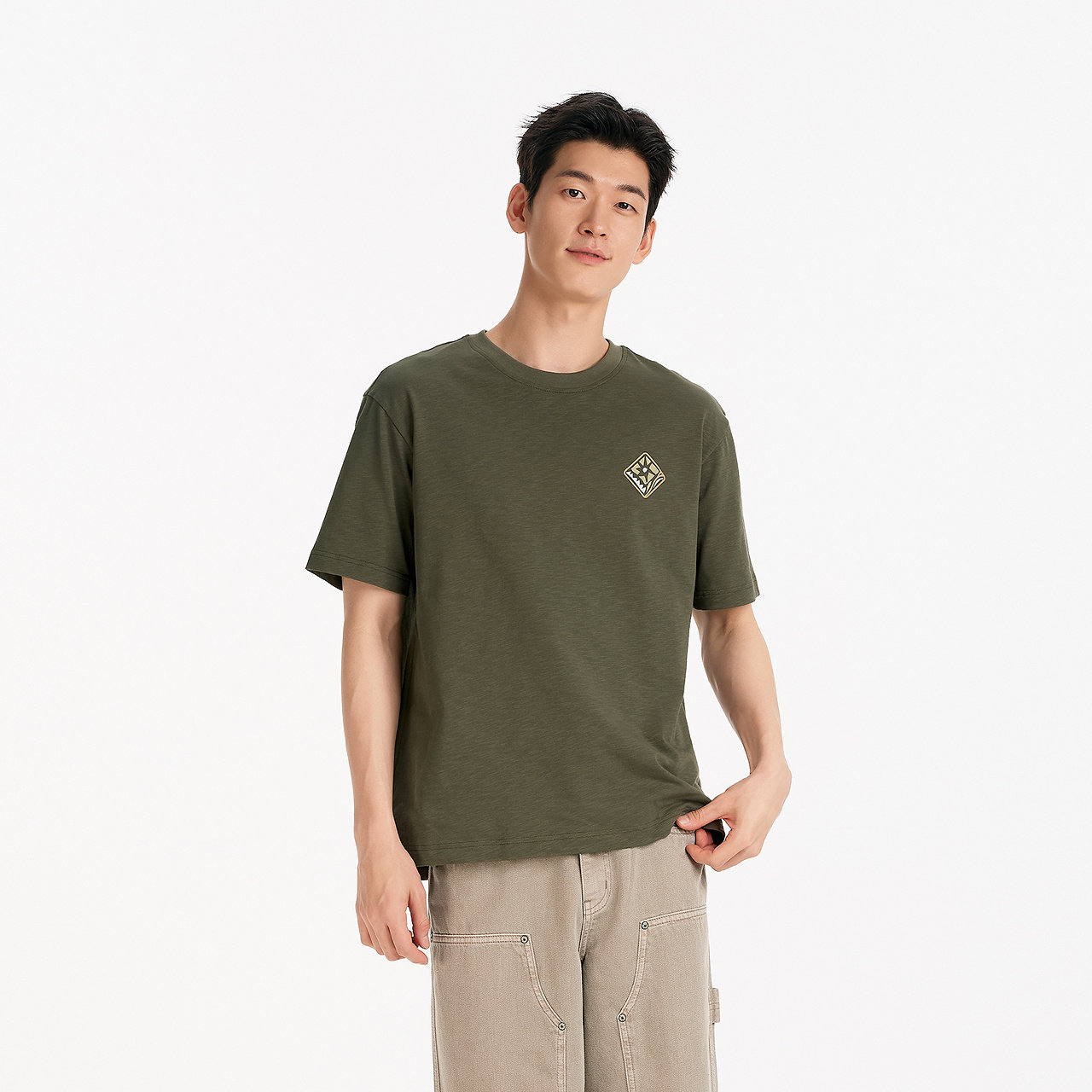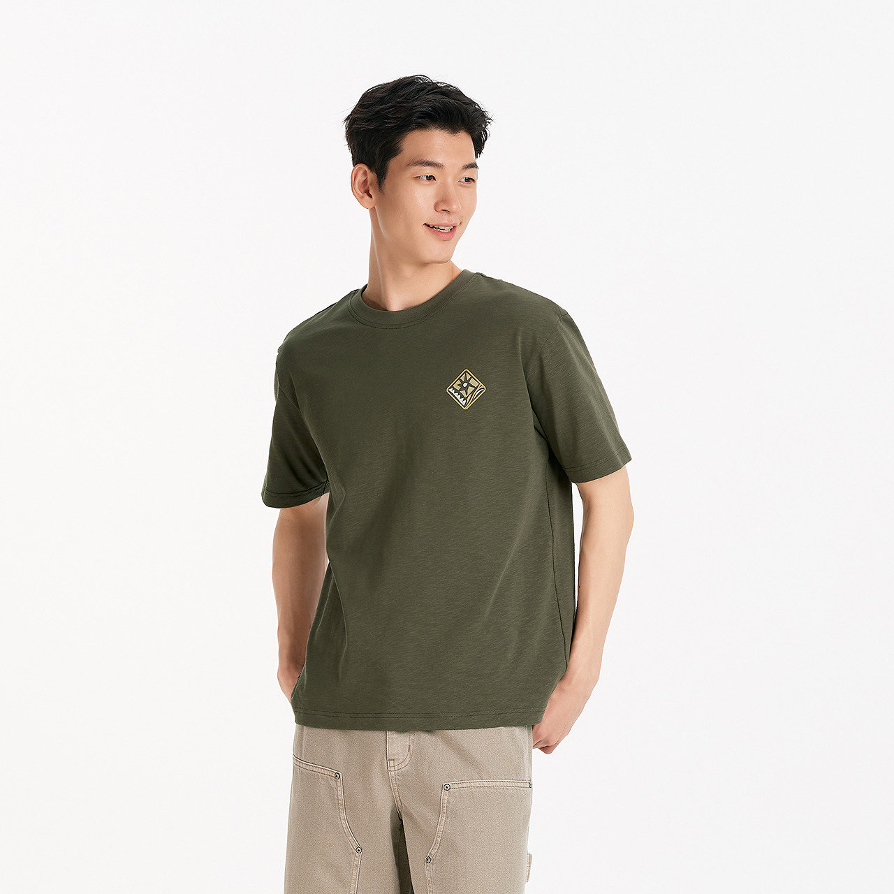 【春上新系列凉感】杰克琼斯男装新款纯色打底衫刺绣短袖男款T恤