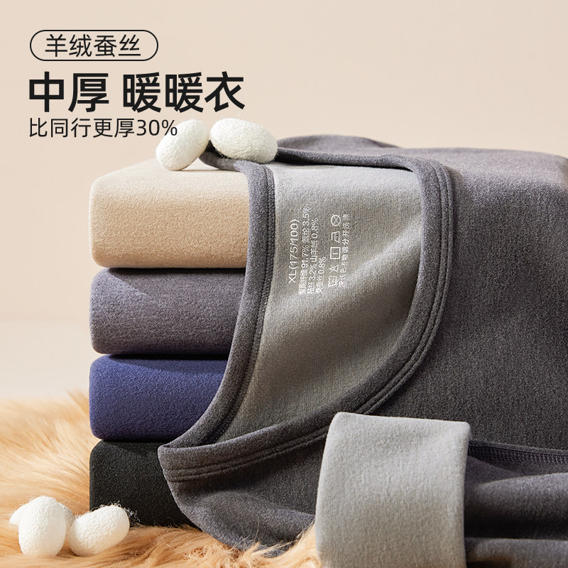 保暖内衣男2025新款羊绒蚕丝发热打底衫加绒加厚秋衣秋裤套装冬季