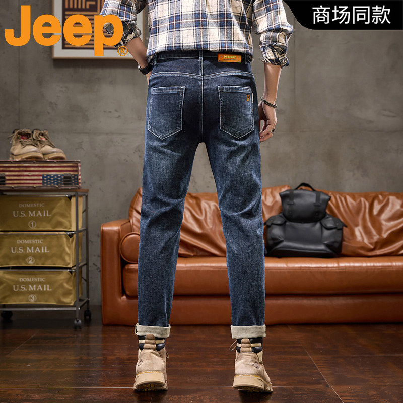 JEEP吉普牛仔裤男士秋冬加绒加厚2025新款宽松直筒保暖休闲长裤子