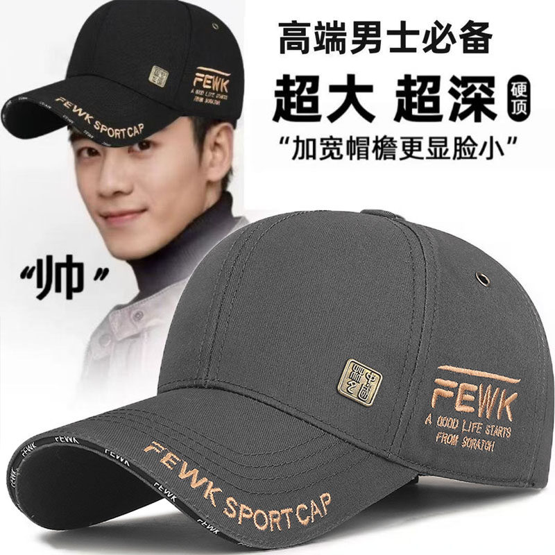 男士帽子新款鸭舌帽防晒硬顶大头潮牌刺绣棒球帽时尚加大加深户外