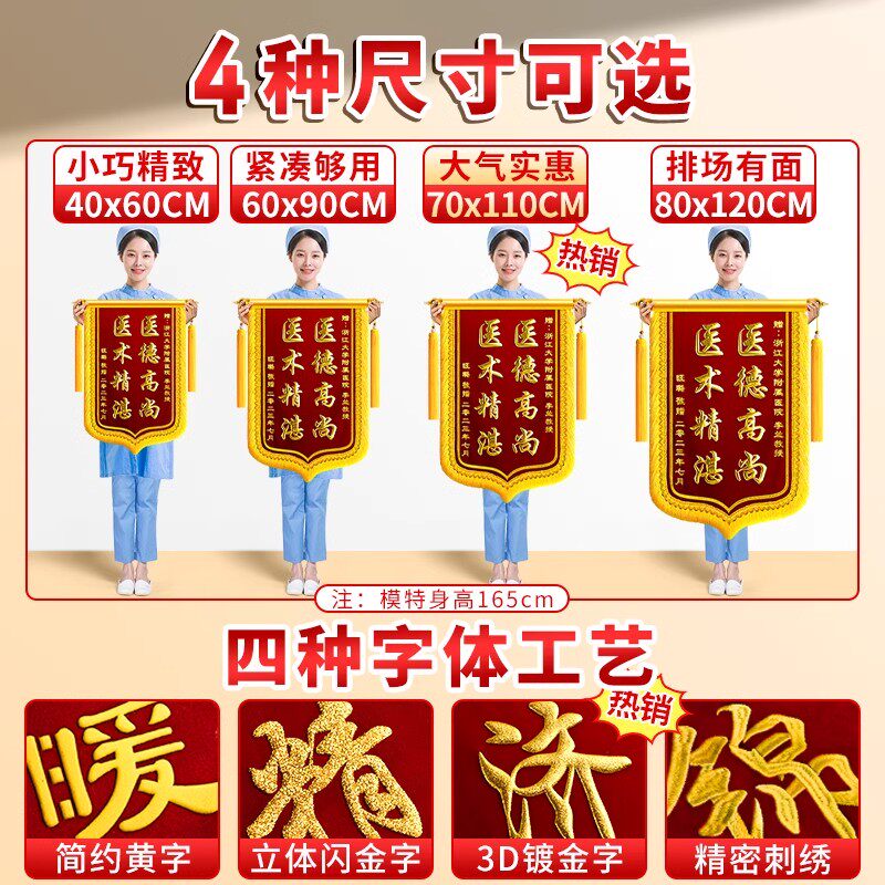 高档感谢老师服务送医生锦旗送老师送赠送幼儿园月嫂月子民警驾校教练物业制作生日金丝绒医院律师优秀团队
