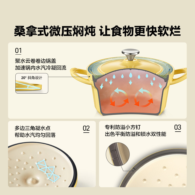 北鼎珐琅锅焖炖锅汤锅砂锅不挑炉灶煲汤家用铸铁锅无氟炖汤锅锁水