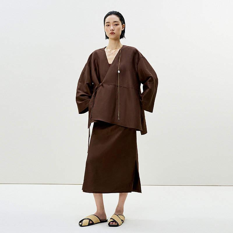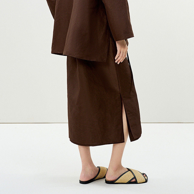 LESS夏季美拉德半身裙通勤气质环保丝麻修身长款直筒裙2P4D13020