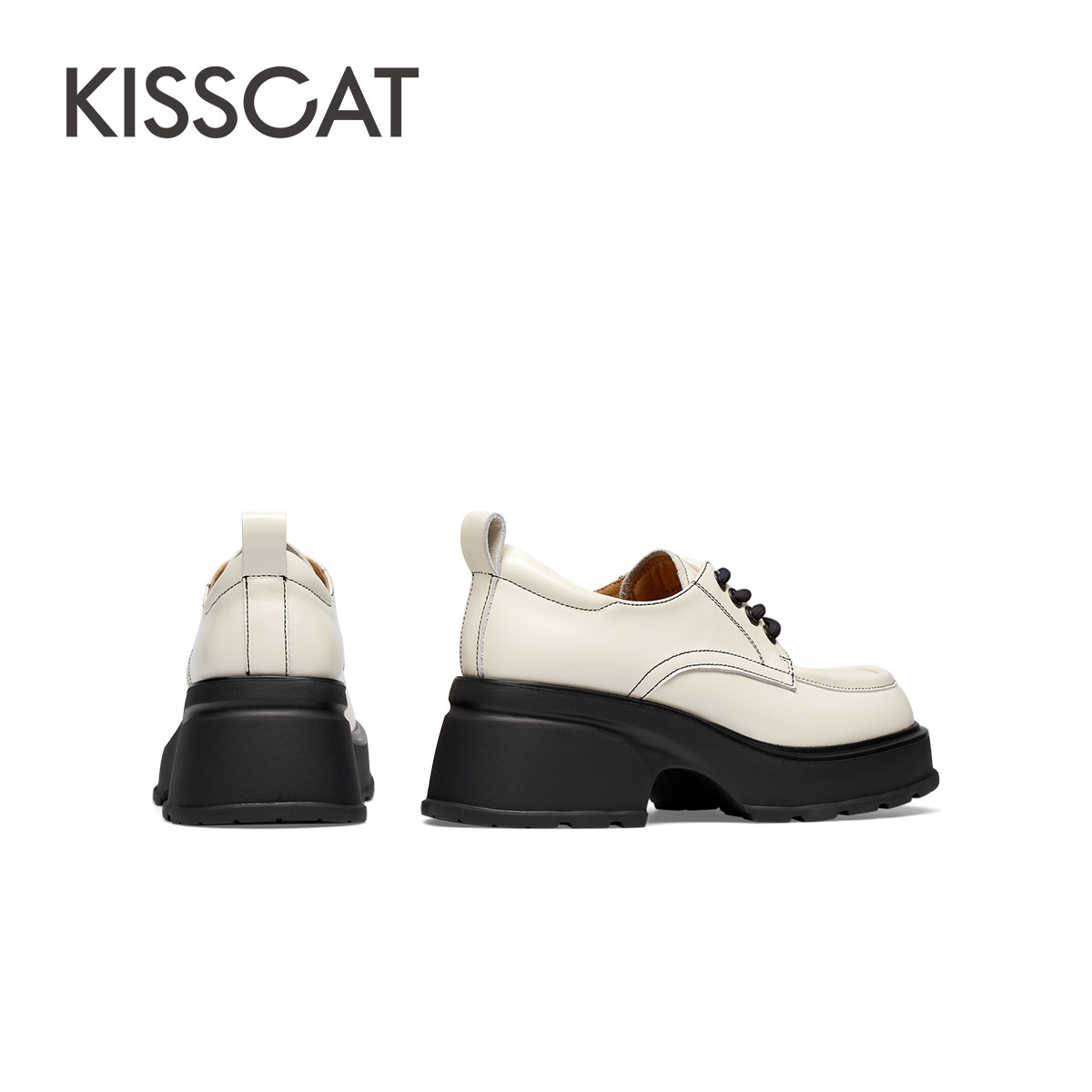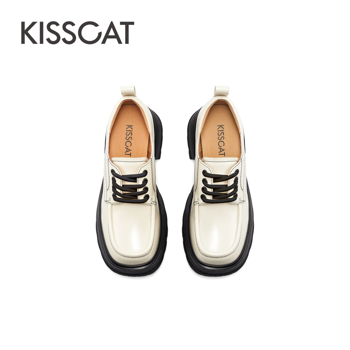 KISSCAT接吻猫秋季新款奥利奥秀气小皮鞋方头粗跟乐福鞋女