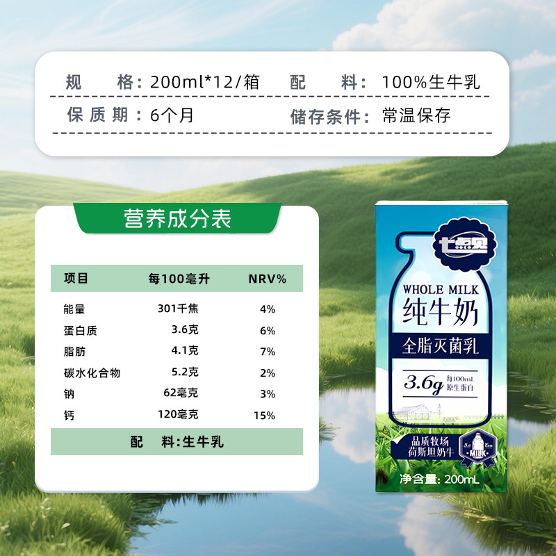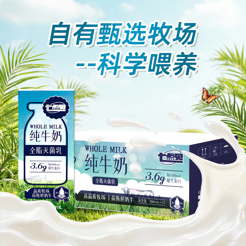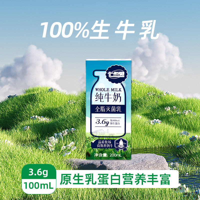 10月七点见纯牛奶全脂3.6g原生蛋白学生奶早餐脱脂奶牛牛乳常温