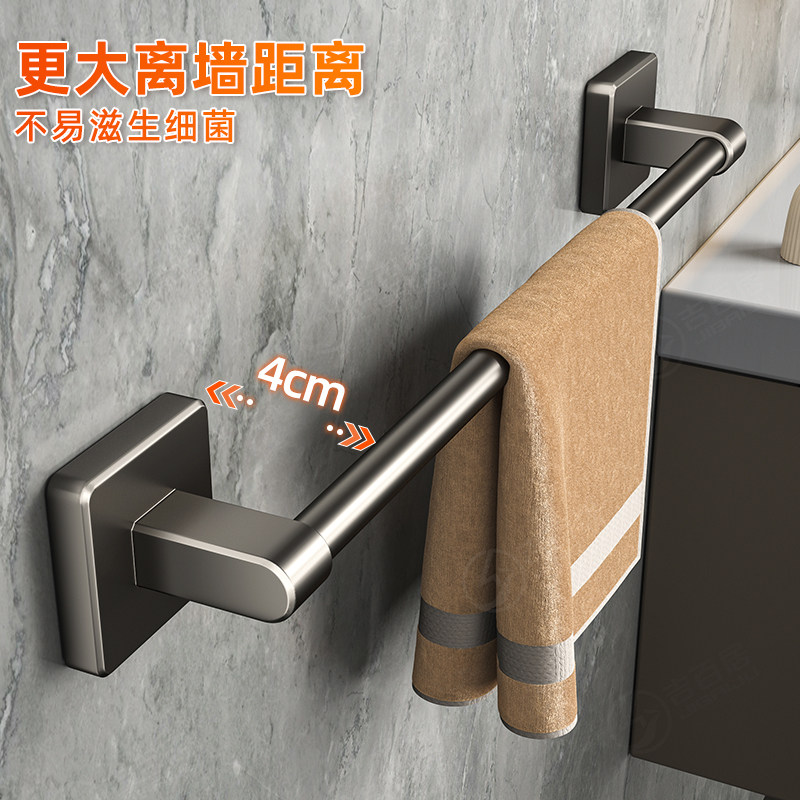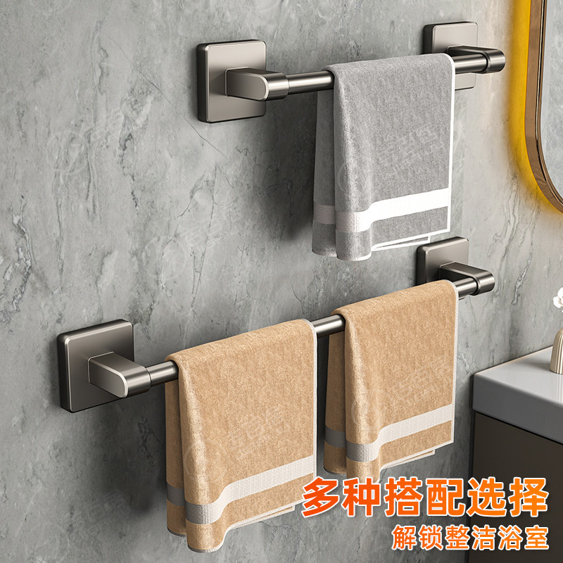 卫生间毛巾架置物架一体浴室免打孔厕所枪灰浴巾架太空铝卫浴双杆