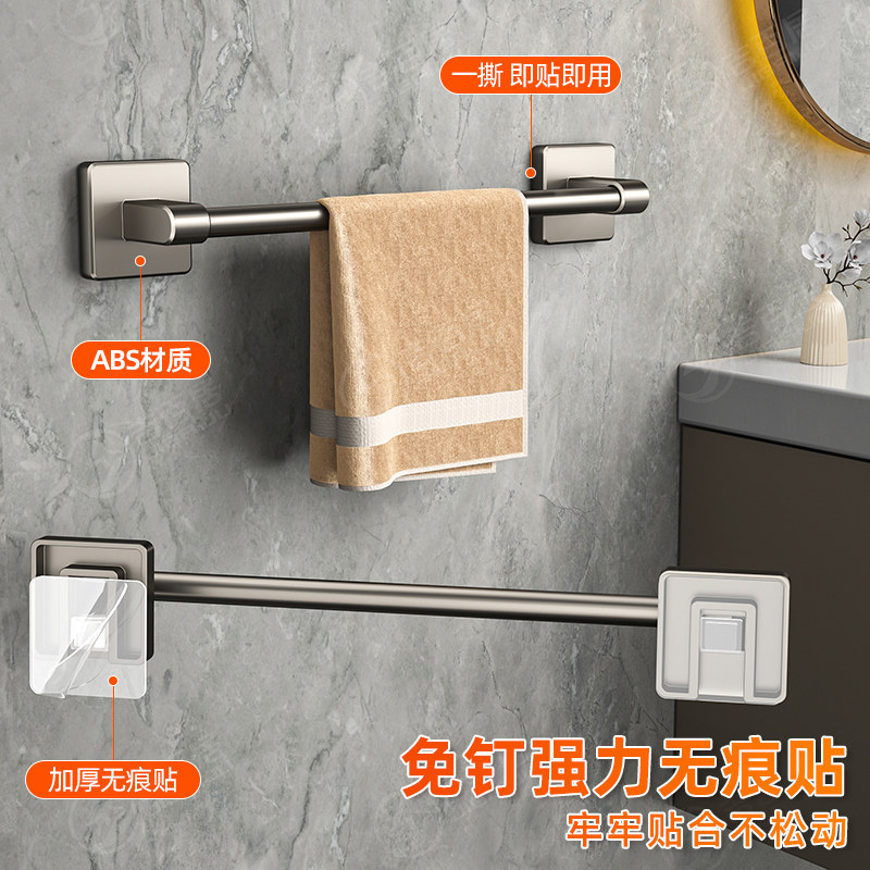 毛巾杆免打孔卫生间加长浴室双杆壁挂式毛巾架厕所单杆拖鞋置物架