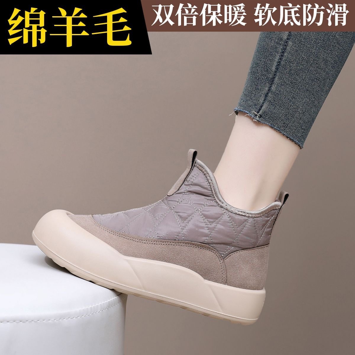 低帮厚底雪地靴女2025新款冬季懒人一脚蹬毛毛棉鞋加绒加厚女鞋子