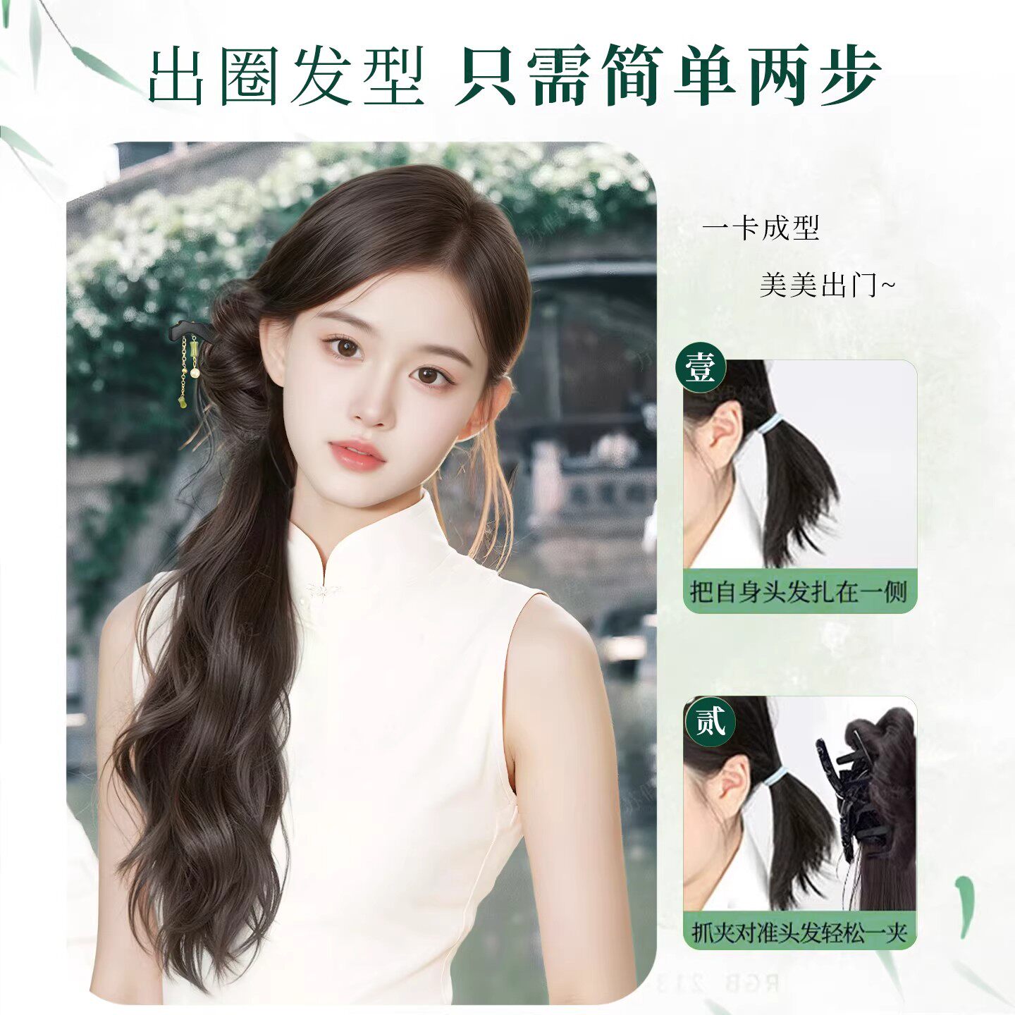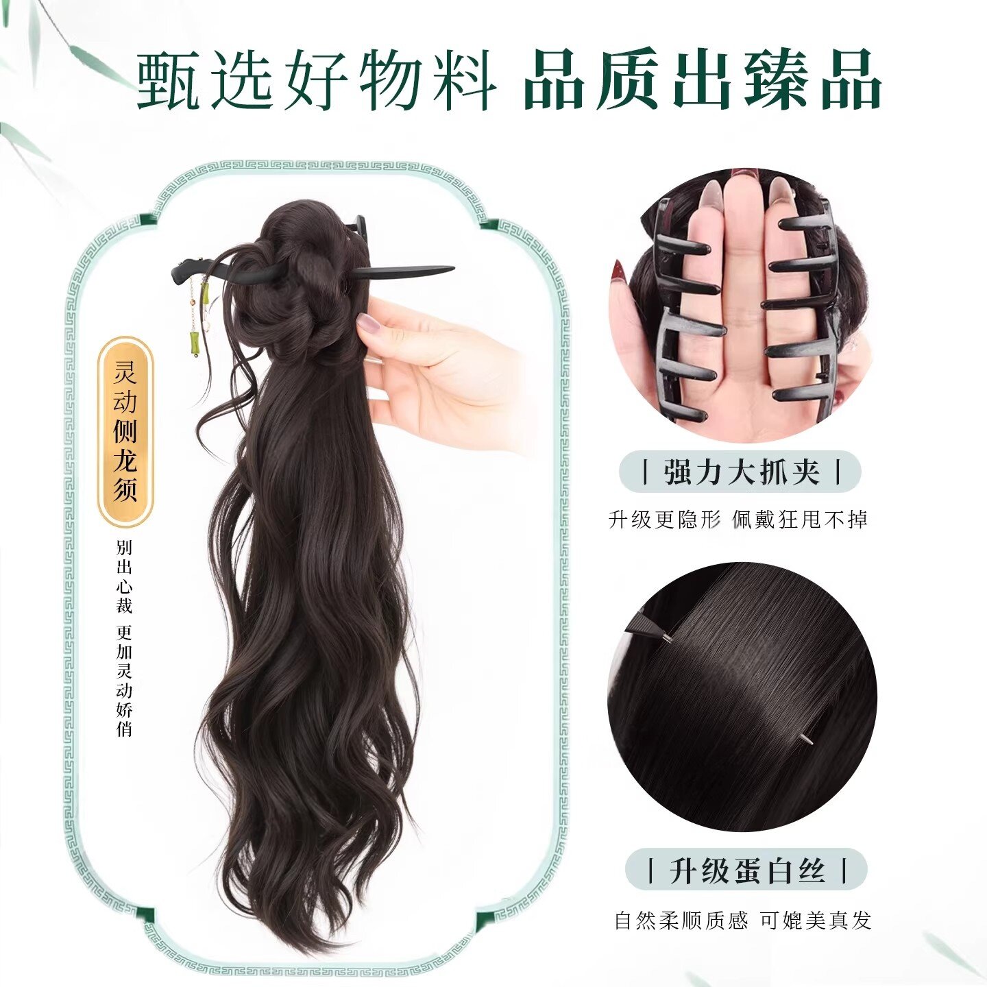 新中式假发抓夹女侧马尾汉服旗袍编发发簪马尾古风仿真发假发辫子