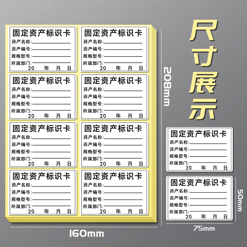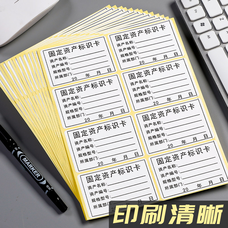 60张固定资产标签贴设备管理标识卡手写不干胶贴纸防水防油办公设备标识卡片实物盘点标签贴纸公司电脑可打印
