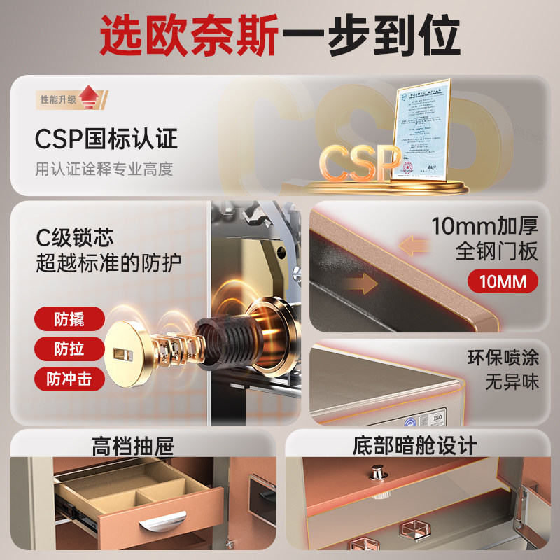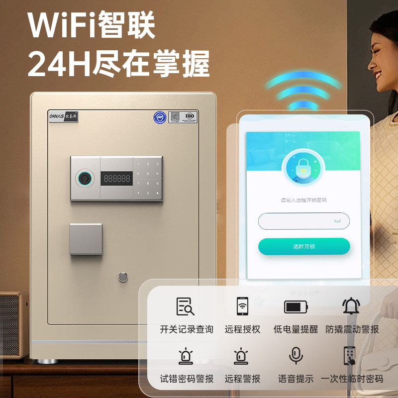 欧奈斯保险柜家用2026新款国标CSP认证防盗办公室密码保险箱45/60/80cm大型智能WIFI指纹解锁银行同款搬不走