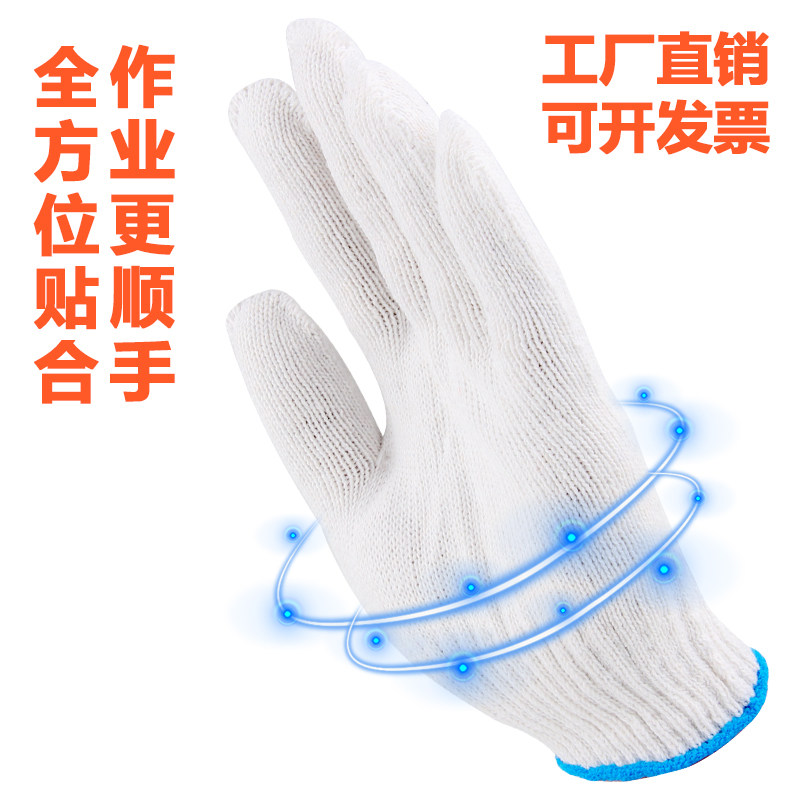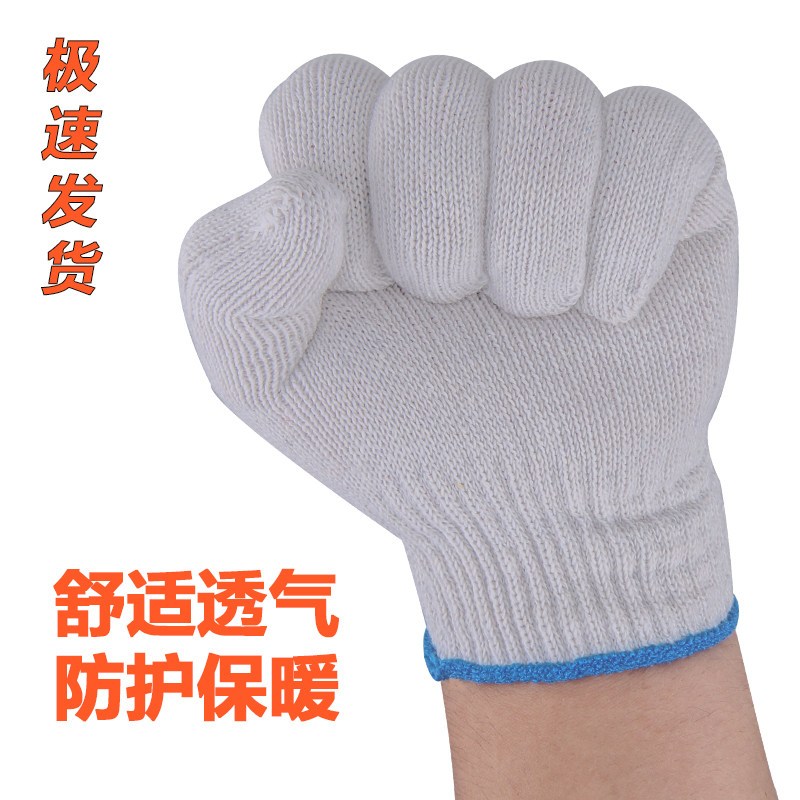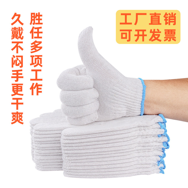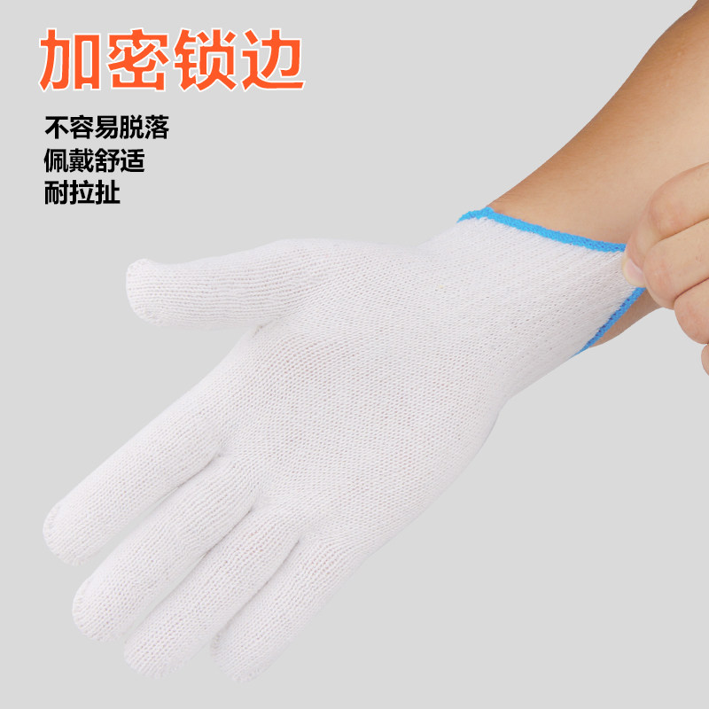 纯棉加厚薄款白棉纱棉线尼龙劳工劳动男工地干活劳保手套耐磨工作