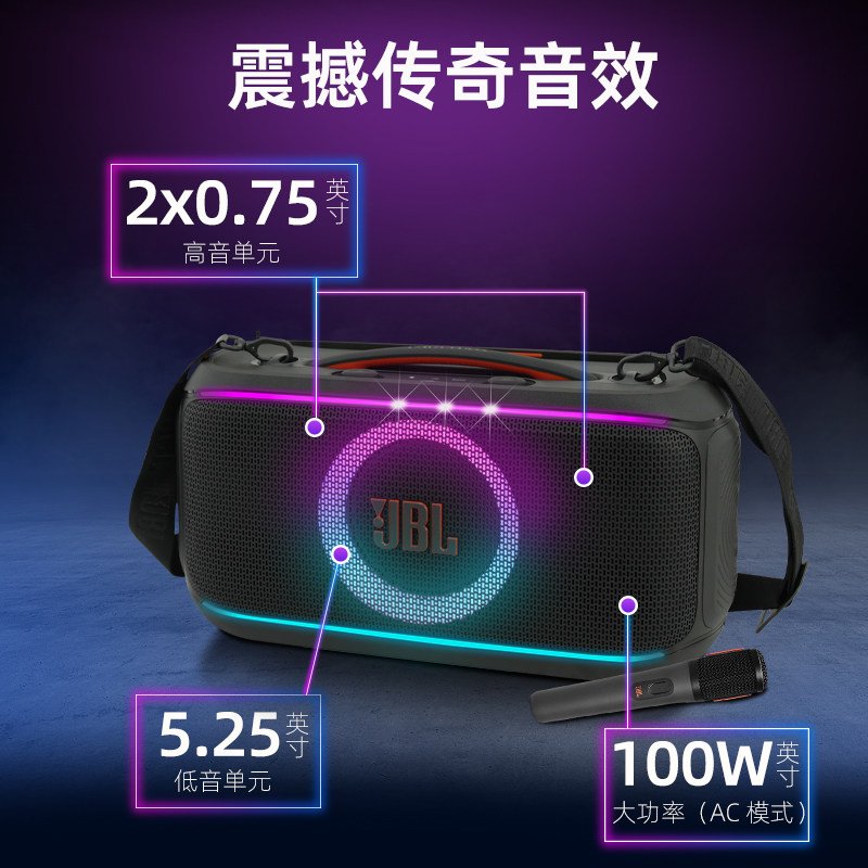 JBL PARTYBOX ON-THE-GO 2无线蓝牙卡拉OK户外便携音响KTV音箱