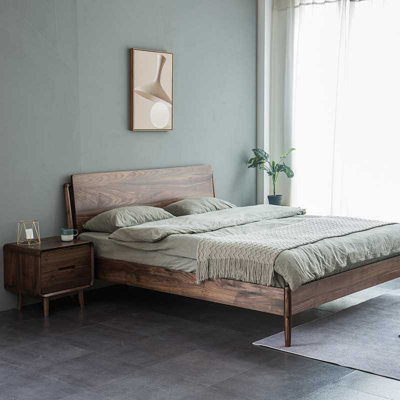 全实木床 1.8米1.5现代简约纯实木床架 卧室家具 北欧橡木双人床