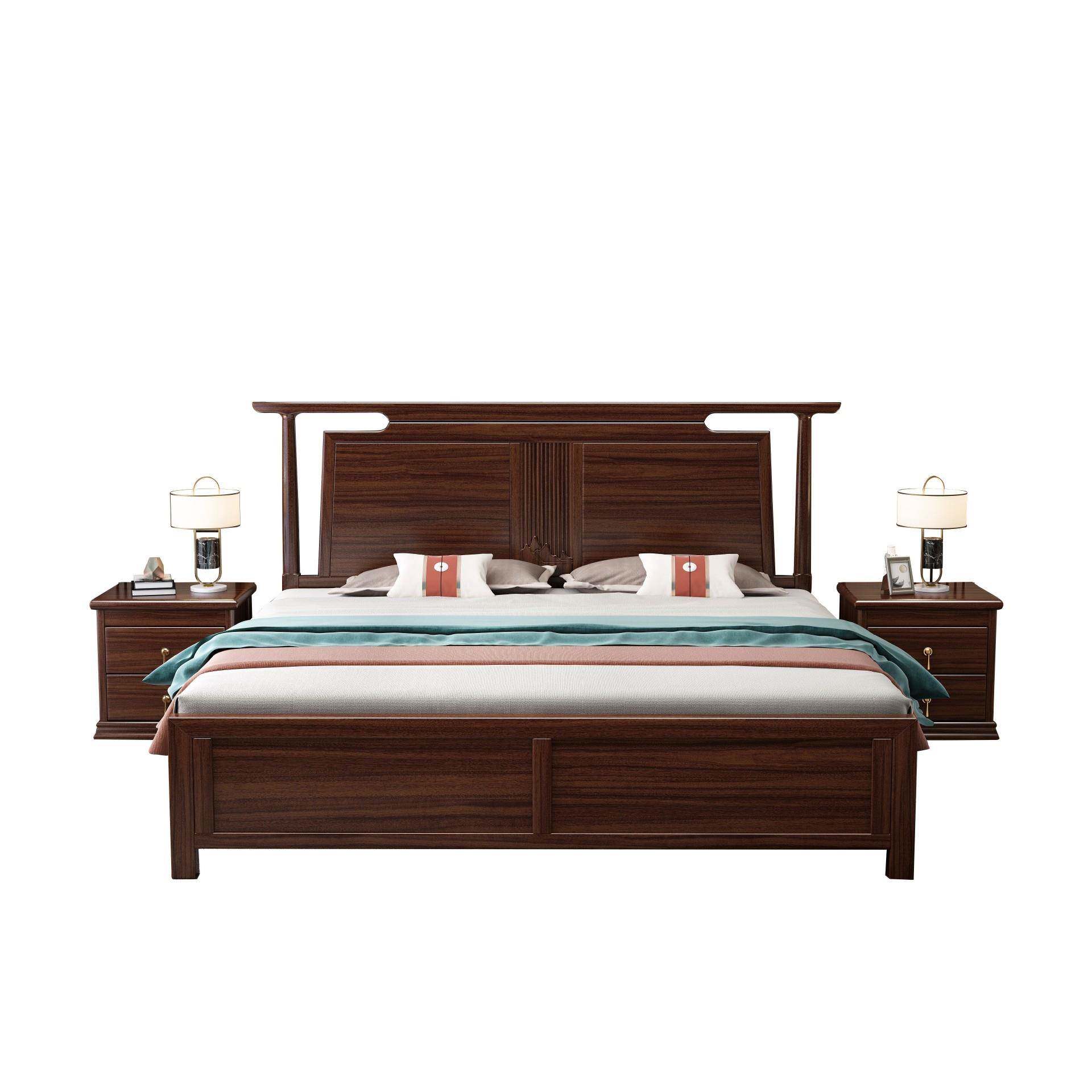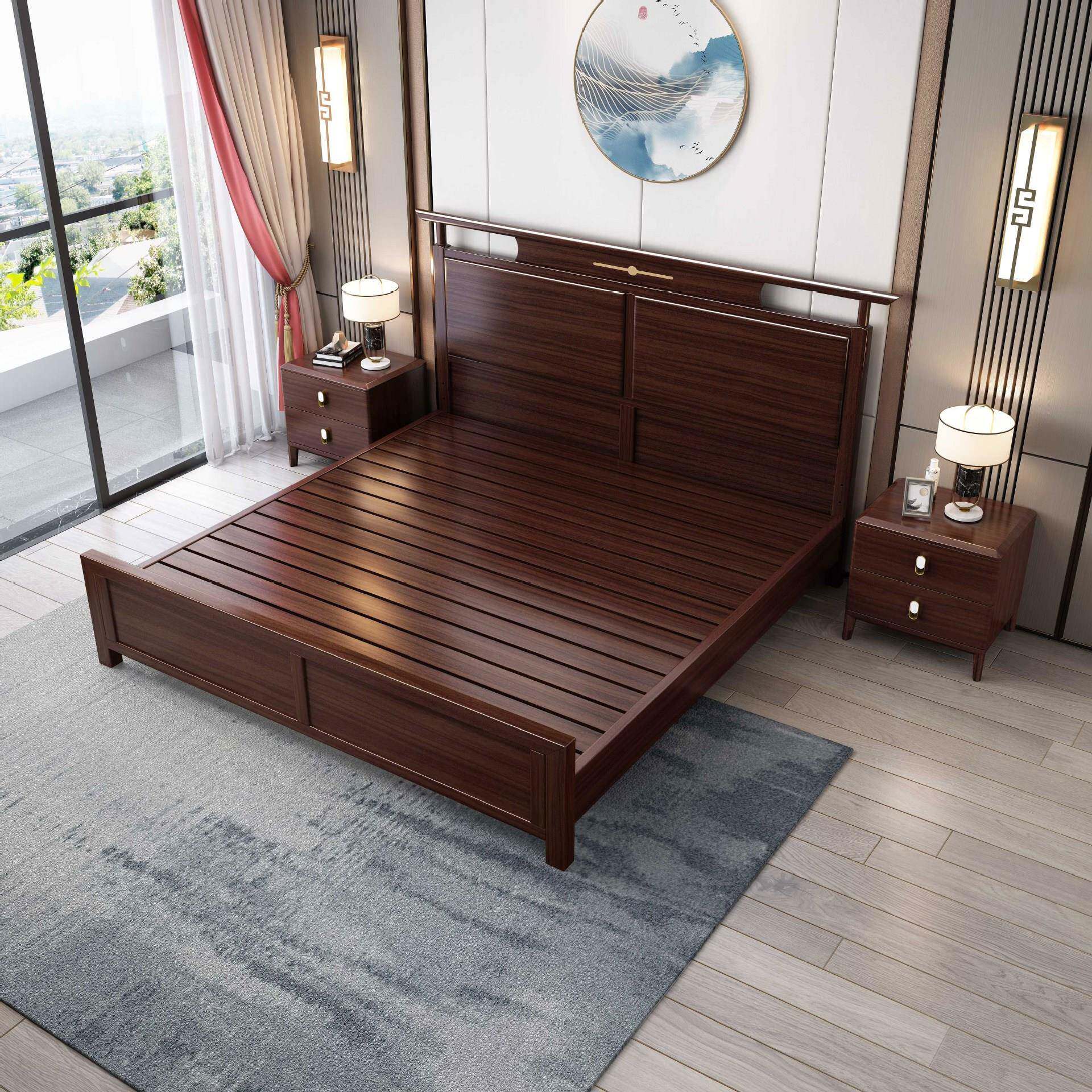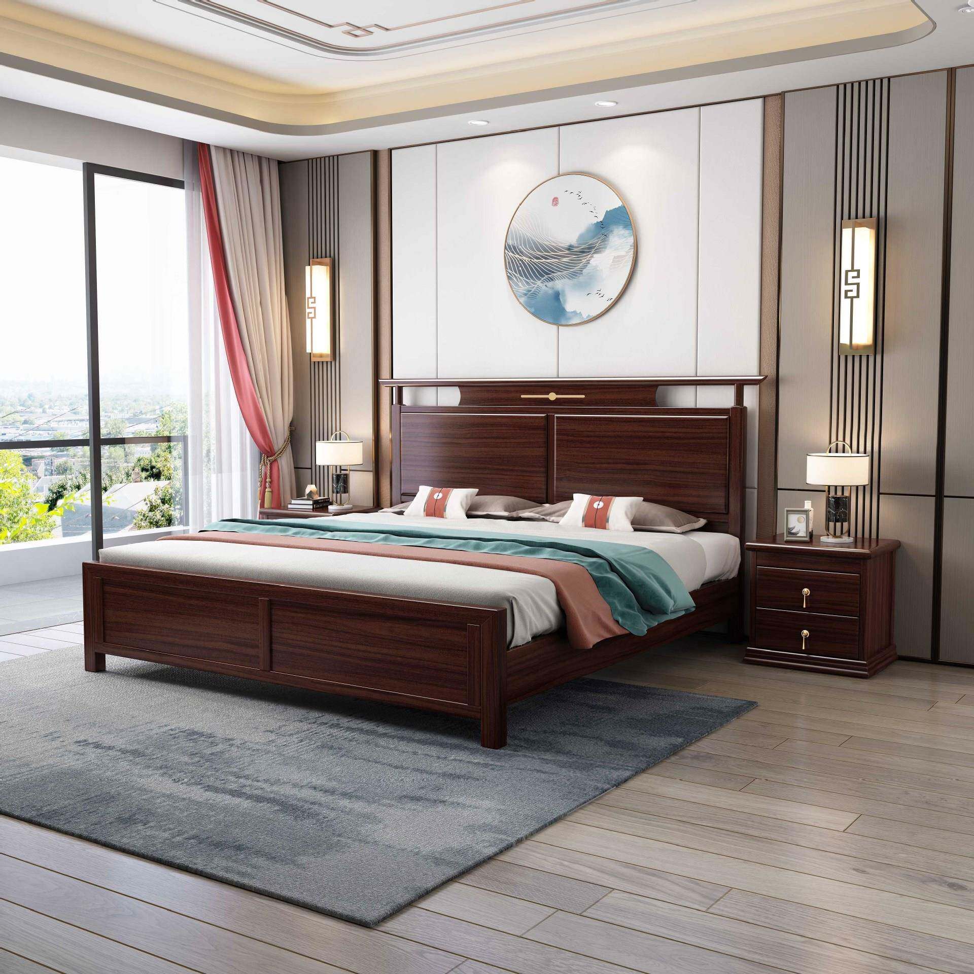 金丝檀木新中式实木床现代简约1.8米卧室婚床高箱双人床储物家具