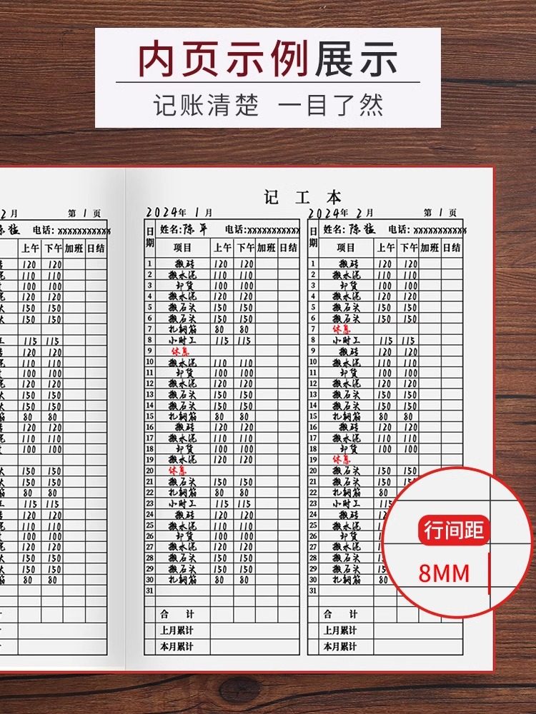 皮质记工本31天2026年工地建筑员工个人日出勤本记工簿上班签到记录表临时工工时登记簿出勤本工天记录本工
