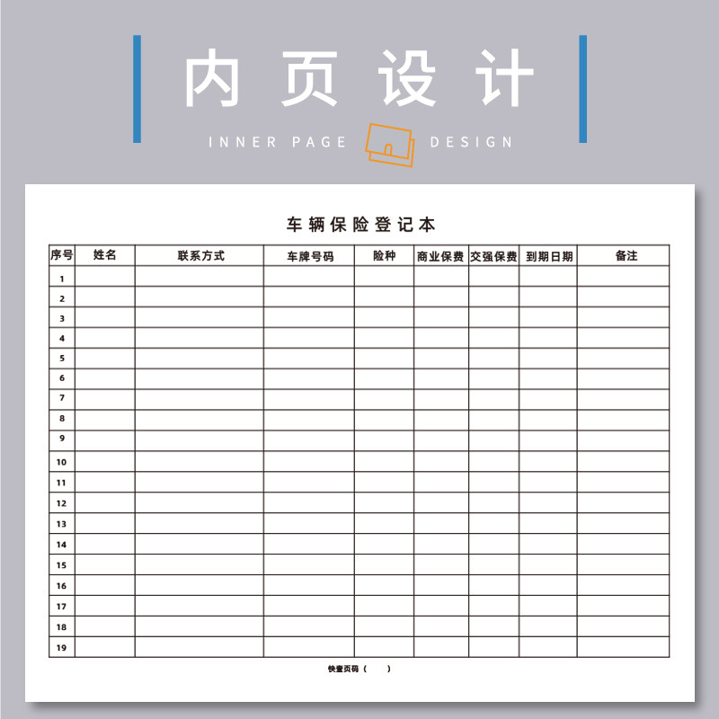 车辆保险登记本汽车保养记录本车辆保费险种记录表顾客车险明细表车辆投保年检维修登记簿车辆使用加油记录本